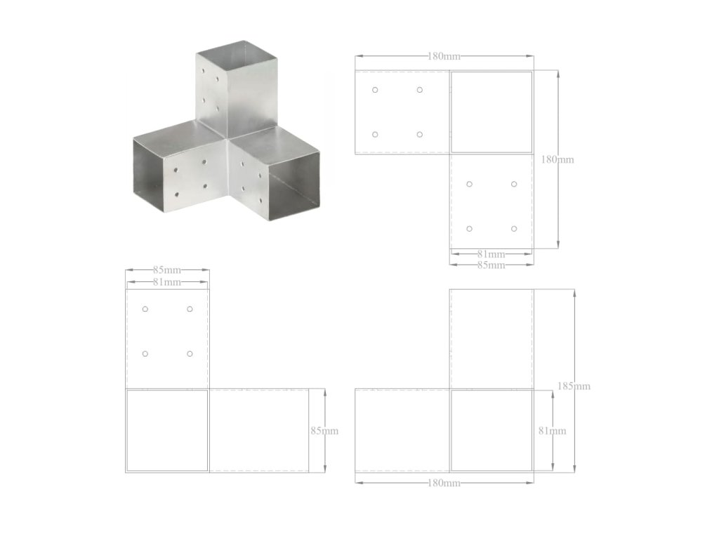 Elektrogalvanizovaná spojka umožňuje snadné připojení a spojení trámů nebo nosníků. Všechny spojky jsou předvrtané. Tato trámová spojka je určená pro 3 čtvercové dřevěné trámy s hranou o délce 81 mm.