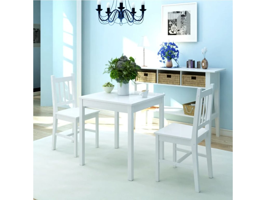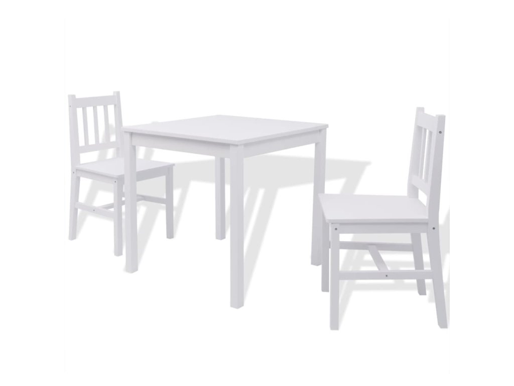 Tento dřevěný jídelní set se stolem a dvěma židlemi má decentní nadčasový design a vašemu interiéru dodá stylový šarm.