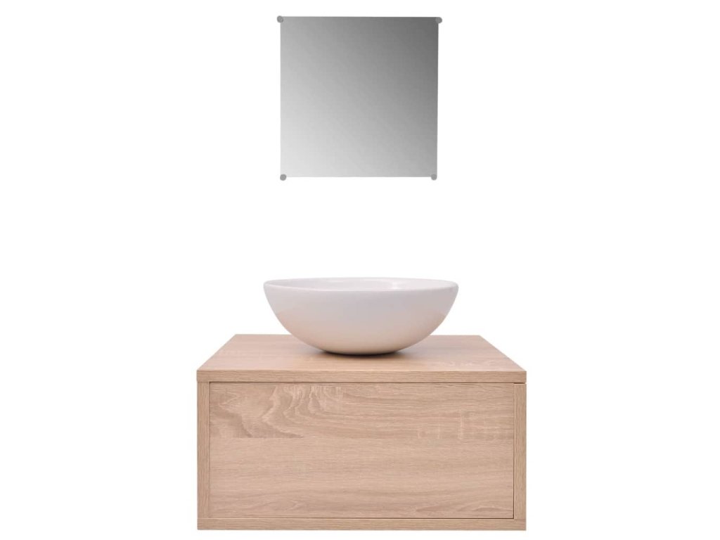 Tříkusový set koupelnového nábytku a umyvadla, béžový 272226