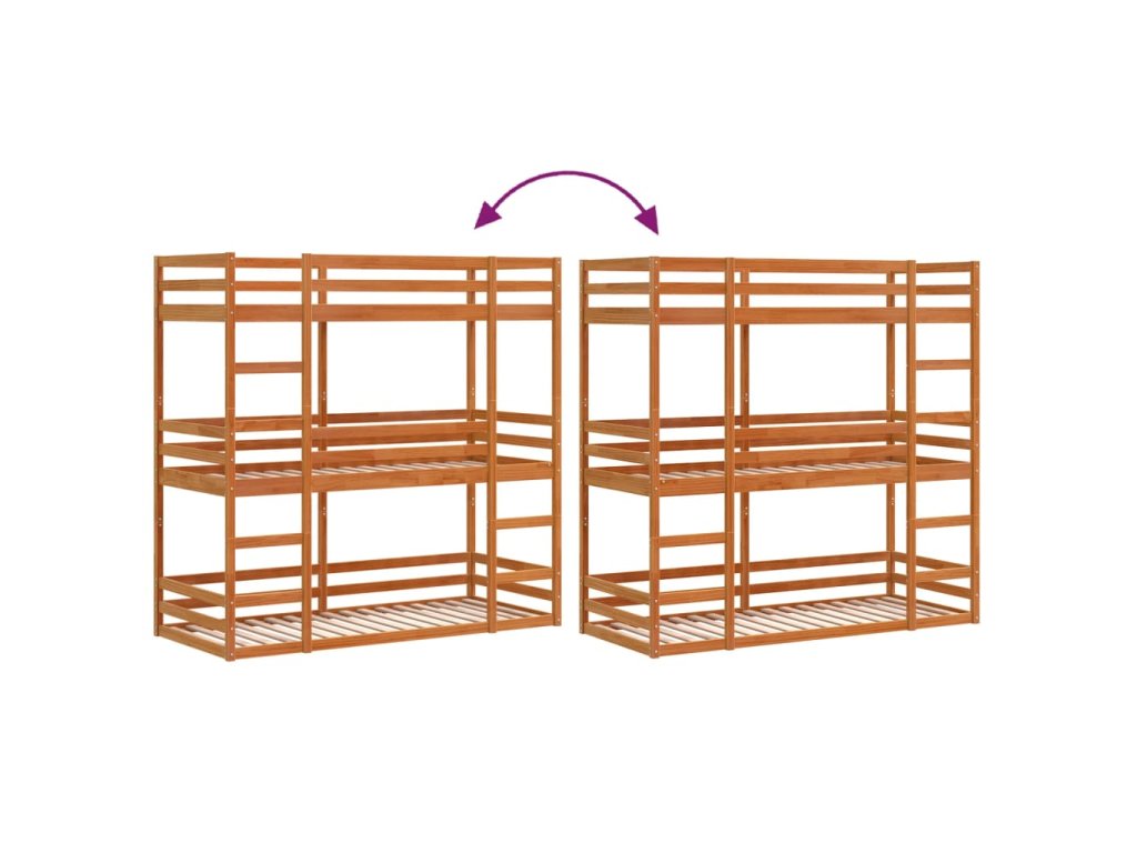 Třípatrová postel voskově hnědá 75x190 cm masivní borové dřevo 3284262