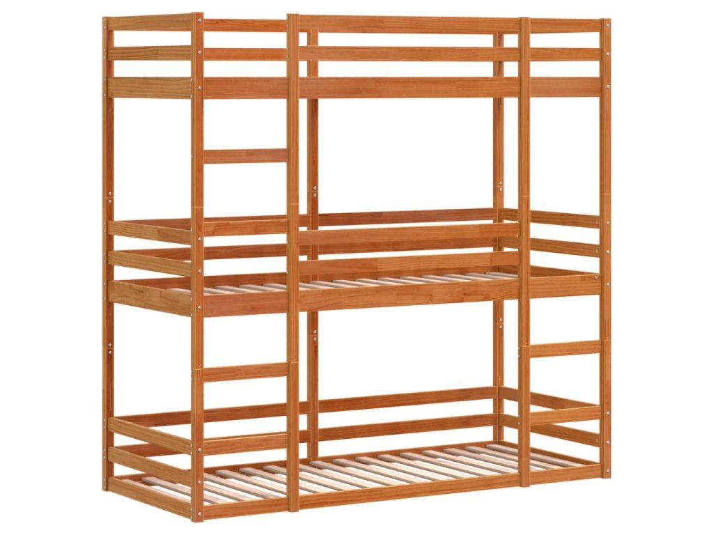 Třípatrová postel voskově hnědá 90x190 cm masivní borové dřevo 3284259