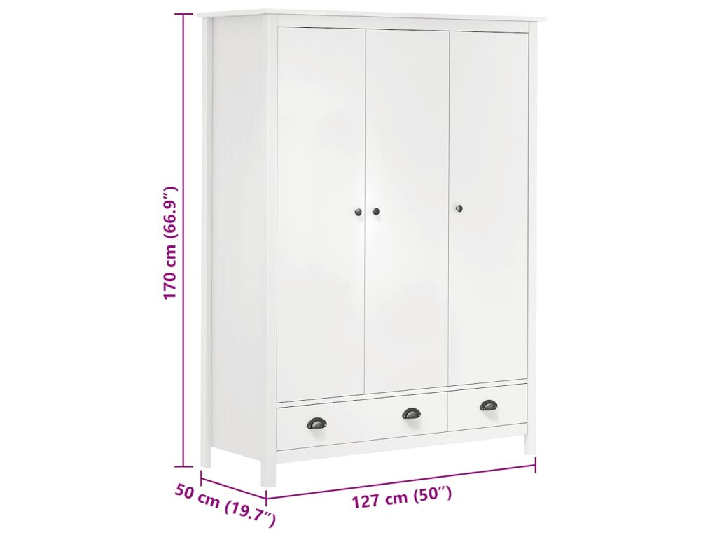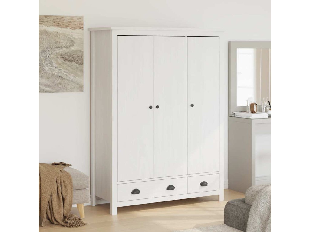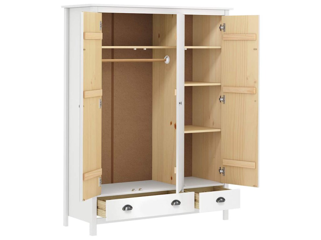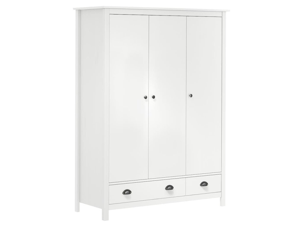 Trojkřídlá šatní skříň Hill bílá 127x50x170 cm masivní borovice 288952