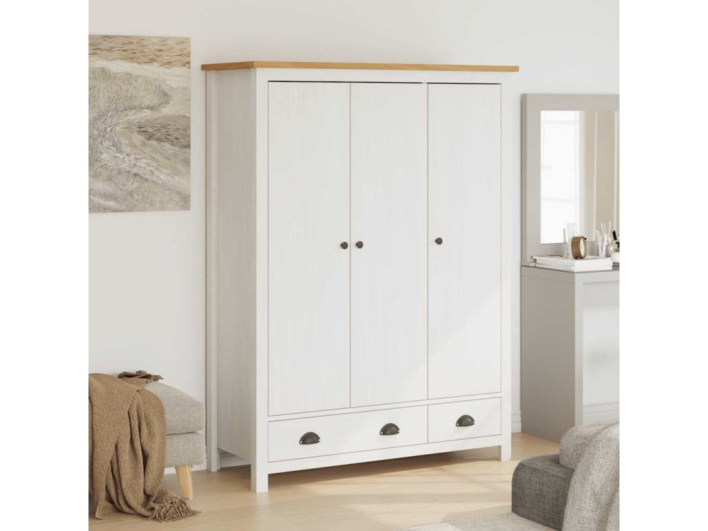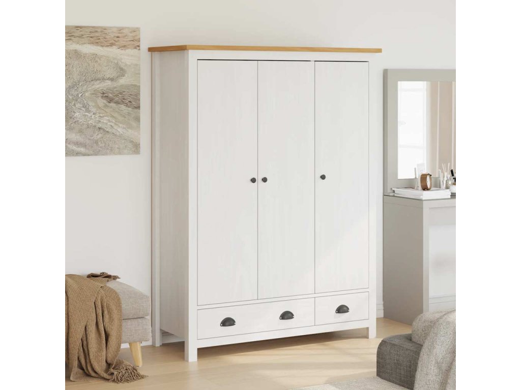 Trojkřídlá šatní skříň Hill bílá 127x50x170 cm masivní borovice 288954