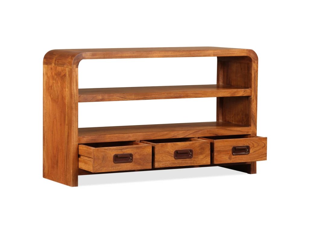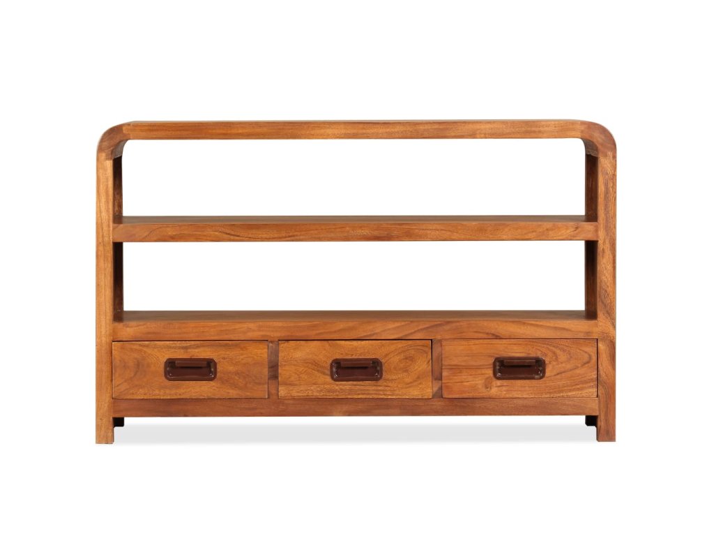 Tato skříňka na multimediální zařízení je zhotovená z masivního akáciového dřeva. Akácie je odolné tropické tvrdé dřevo. Tato skříňka pod televizi je celá ručně vyrobená a překrásná kresba dřeva propůjčuje každému kusu jedinečný a od ostatních lehce odlišný charakter. Je vybavená 2 policemi a 3 zásuvkami, na které se vejde všechno vaše multimediální vybavení, nosiče médií a ostatní předměty, které si chcete vystavit či schovat někde po ruce. Tento výrobek je dodávaný ve složeném stavu, montáž není nutná.