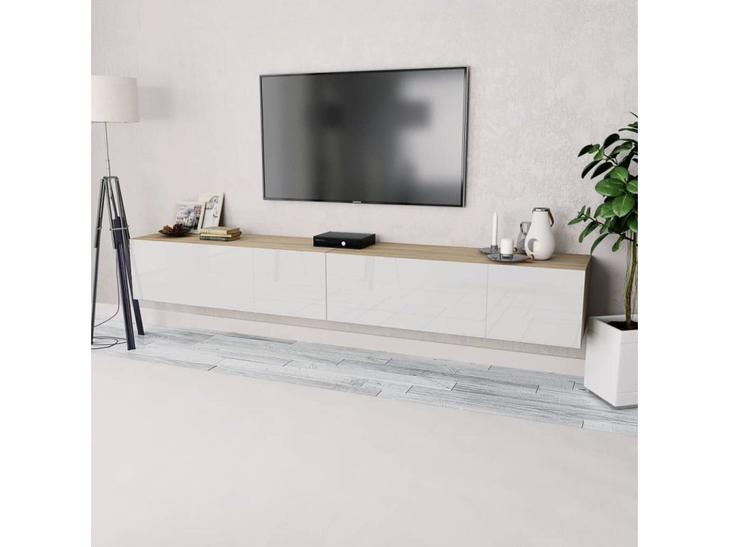 TV skříňky 2 ks kompozitní dřevo 120x40x34 cm bílé lesklé a dub 275114