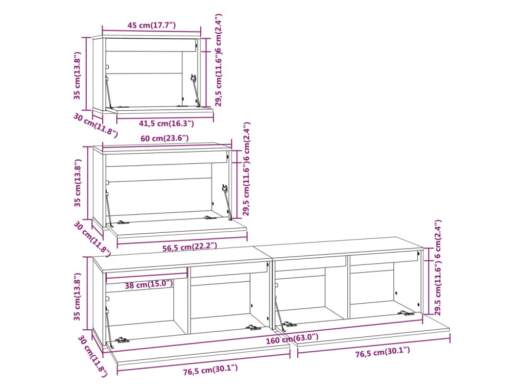- 2x TV skříňka: 80 x 30 x 35 cm (Š x H x V)