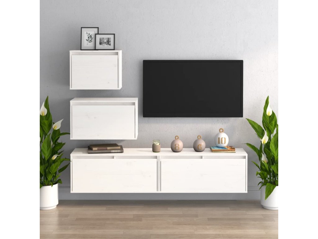 TV skříňky 4 ks bílé masivní borové dřevo 3100145