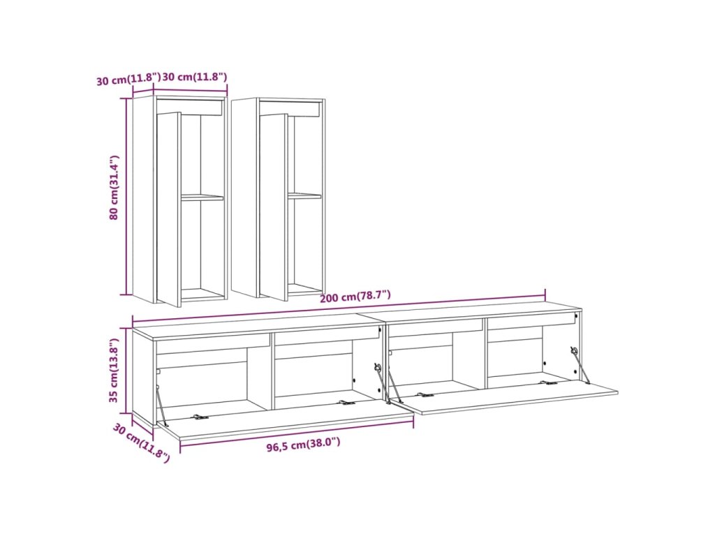 - 2x TV skříňka: 30 x 30 x 80 cm (Š x H x V)