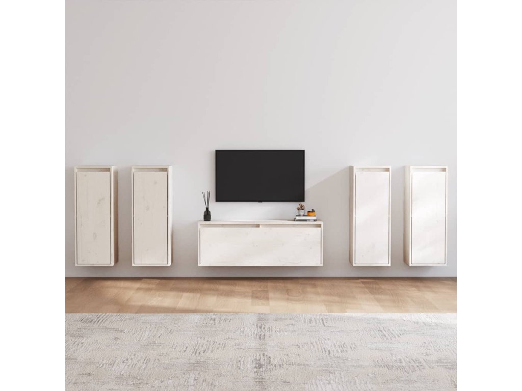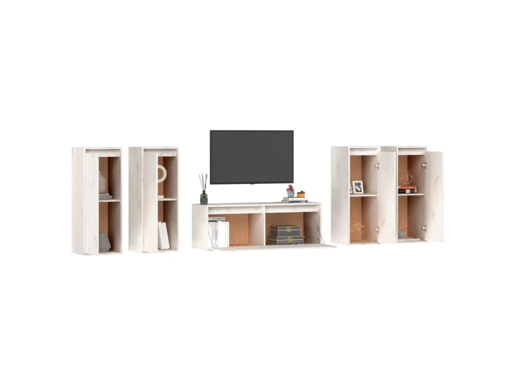 TV skříňky 5 ks bílé masivní borové dřevo 3100215