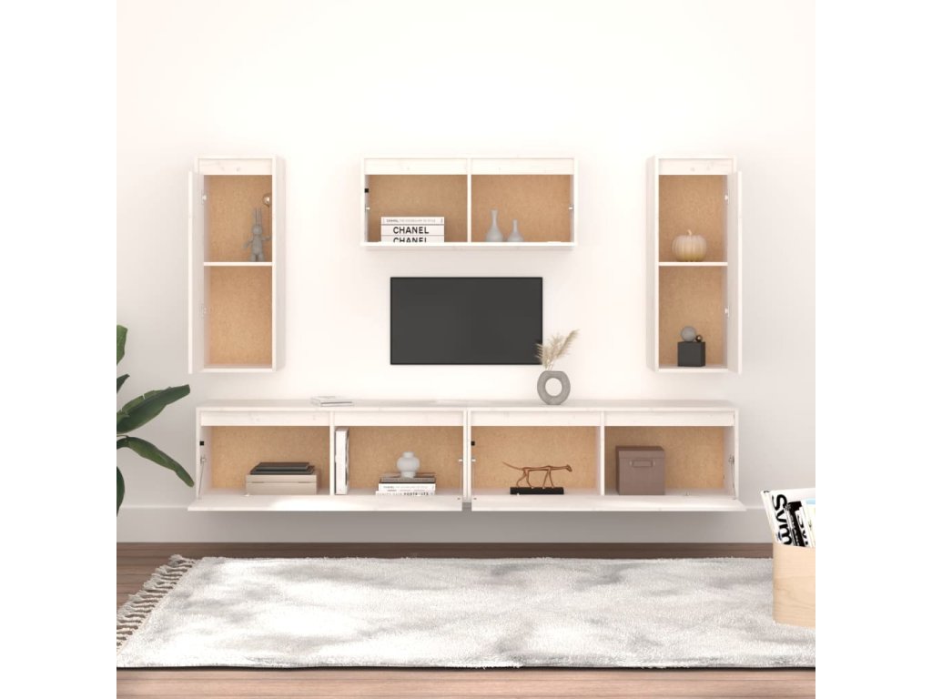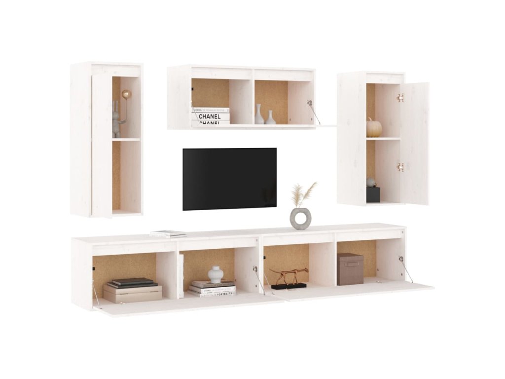 TV skříňky 5 ks bílé masivní borové dřevo 3100245