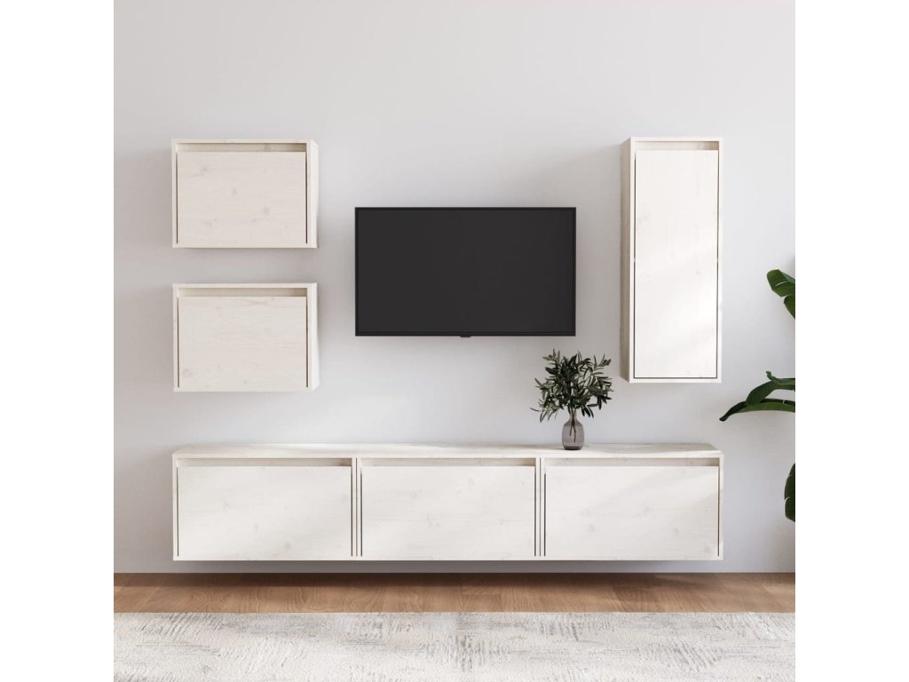TV skříňky 6 ks bílé masivní borové dřevo 3100185