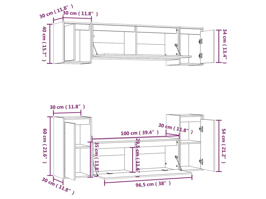 - 2 x TV skříňka: 100 x 30 x 35 cm (Š x H x V)