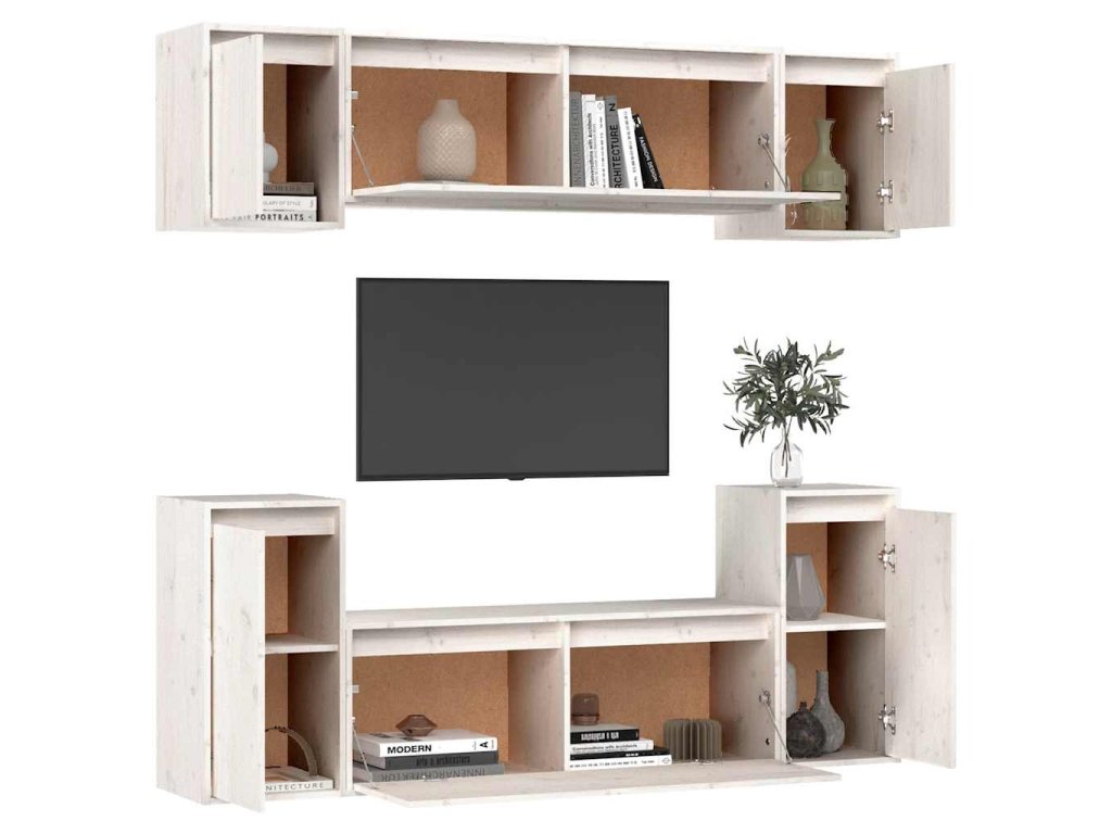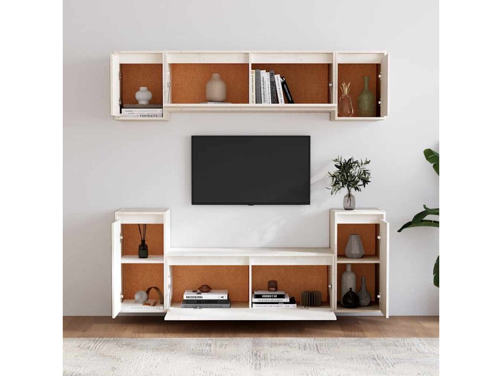 TV skříňky 6 ks bílé masivní borové dřevo 3100190