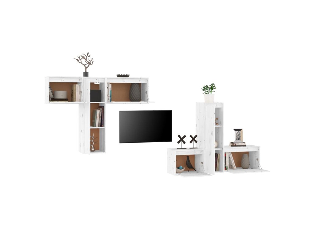 TV skříňky 6 ks bílé masivní borové dřevo 3100255