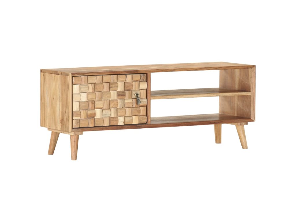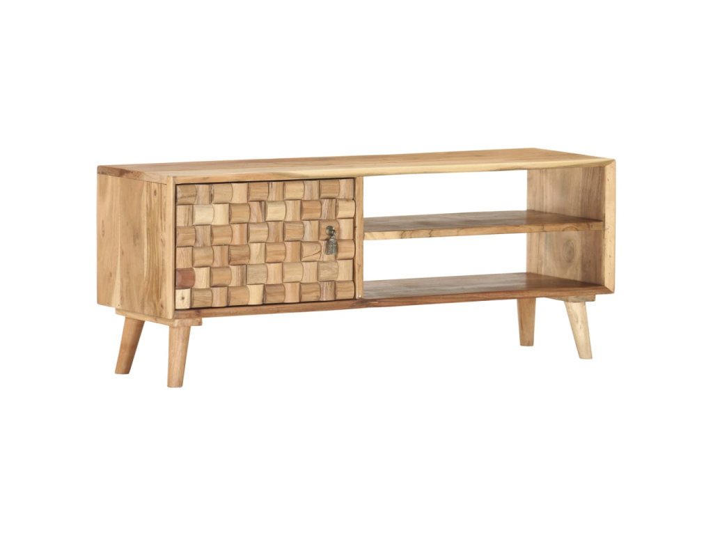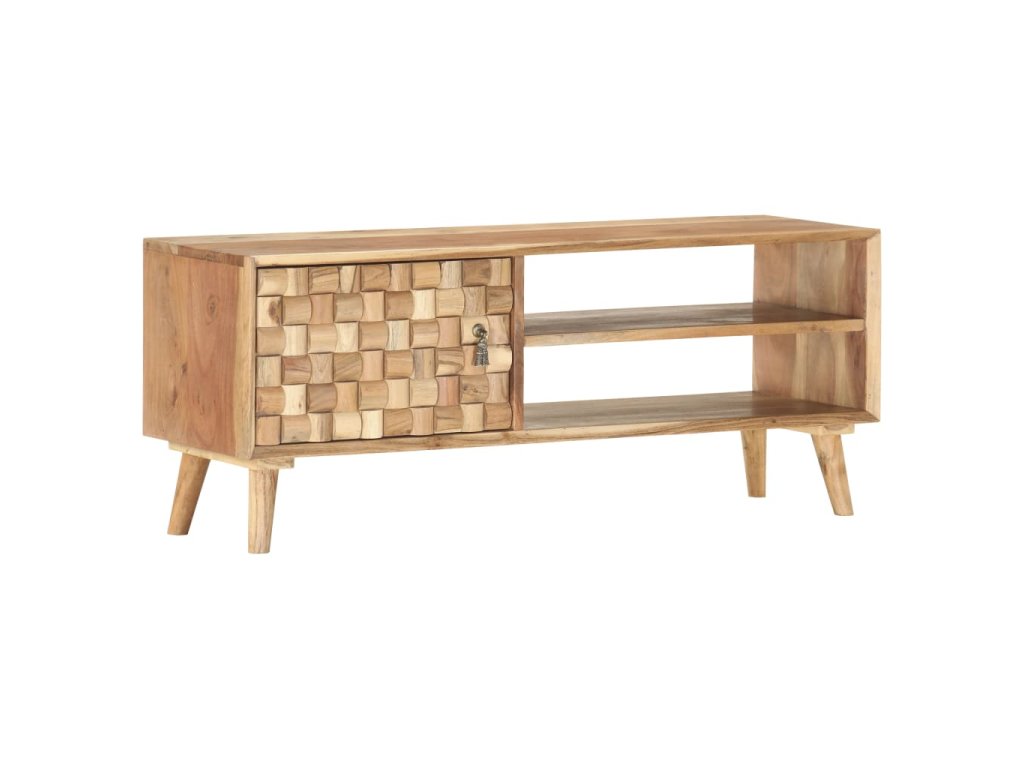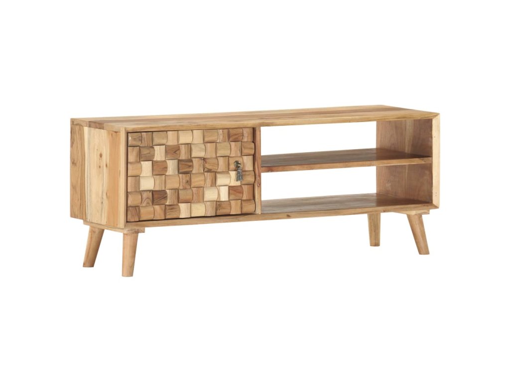 Tento TV stolek z masivního akáciového dřeva je díky svému neobyčejnému designu skvělým doplňkem do vašeho obývacího pokoje. Můžete jej rovněž použít jako nízkou skříňku, příborník nebo úložnou skříňku. Vaše návštěvníky zaručeně zaujme na první pohled.