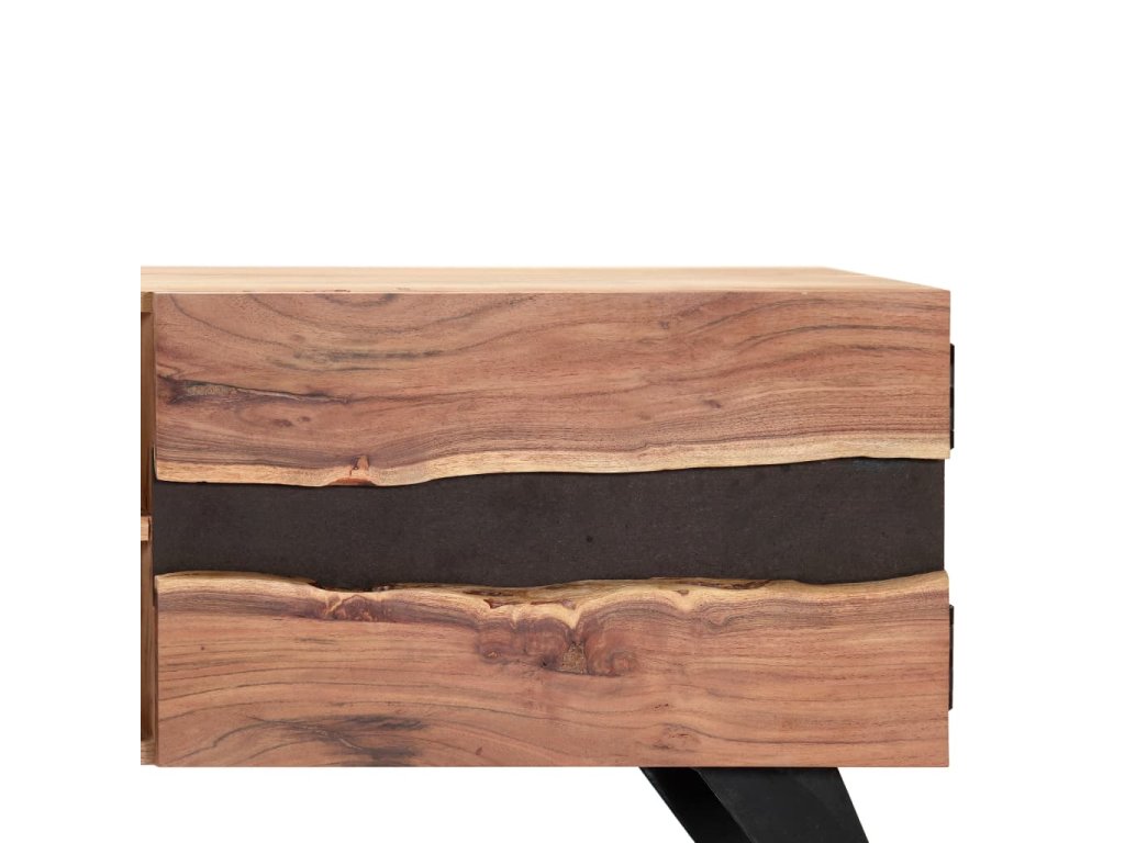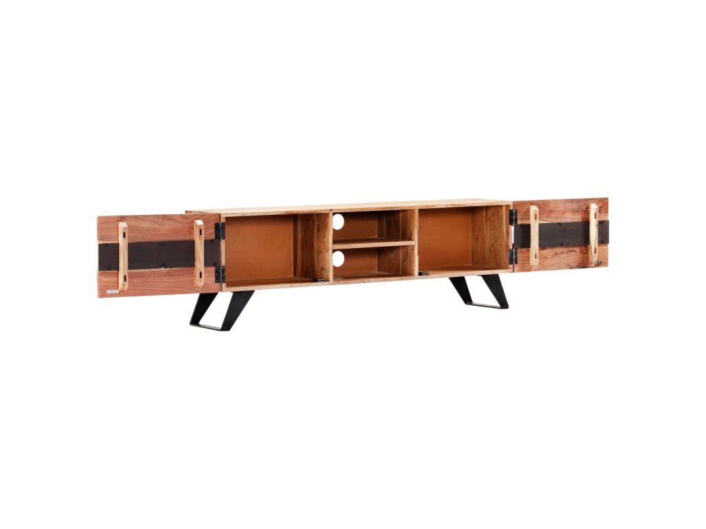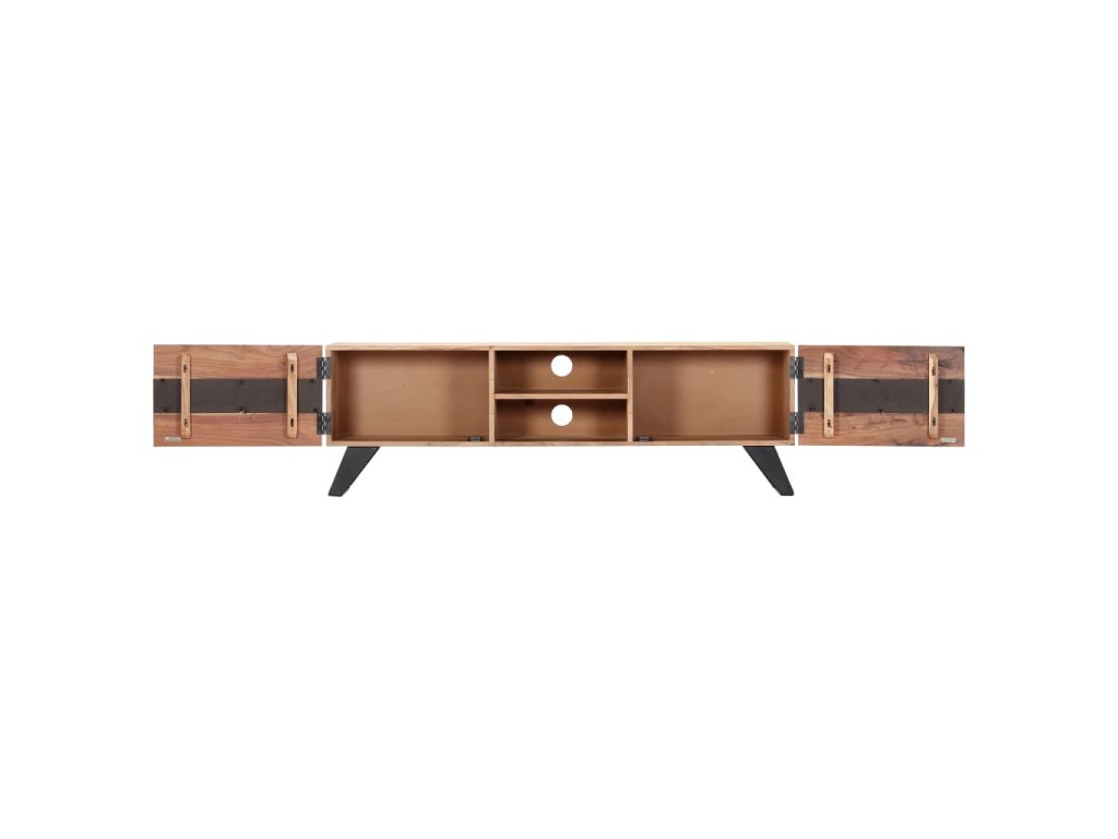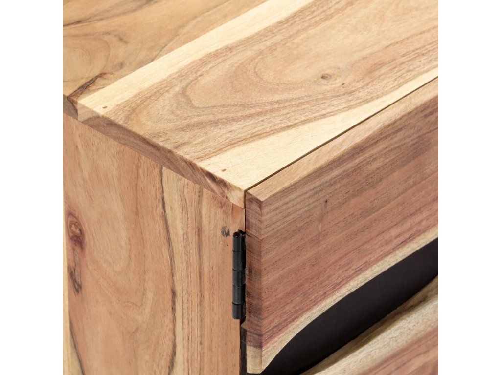 Odkládací skříňka je vyrobena z masivního akáciového dřeva s přírodní povrchovou úpravou, které vděčí za svůj překrásný vzhled. Kromě půvabného designu se může pochlubit také výjimečnou stabilitou, odolností a estetičností. Skříňka je navíc celá ručně vyrobená a elegantní kresba dřeva činí každý kus nábytku zcela jedinečným a lehce odlišným od ostatních. Stolek pod televizi disponuje 2 přihrádkami a 2 zavíracími skříňkami, jež vám poskytnou spoustu místa, kde si můžete uspořádat svá multimediální zařízení, knížky, boty a nejrůznější další věci.