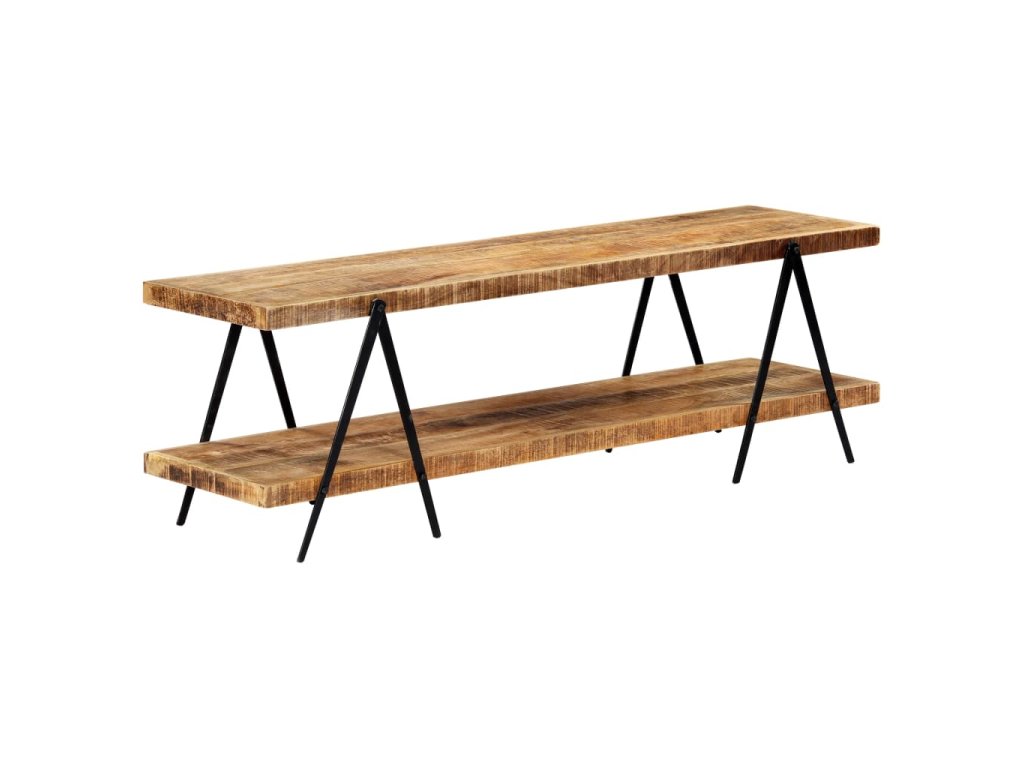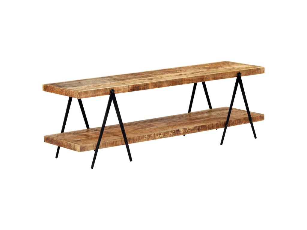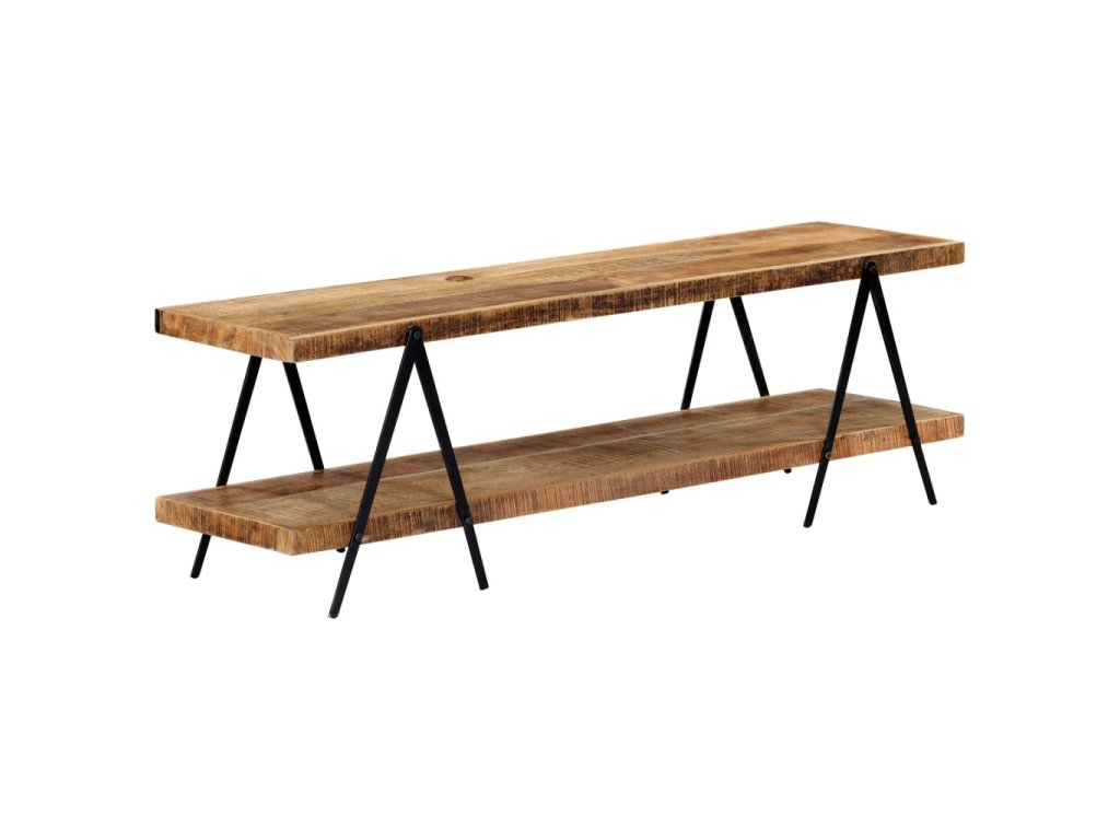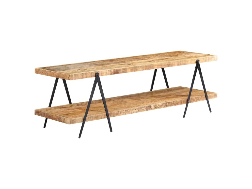 TV stolek je vyroben z masivního mangovníku, tvrdého dřeva s hustou texturou. Hrubé mangovníkové dřevo je nejen schopné unést značnou váhu, ale výborně také odolává opotřebení a působení času. Odkládací skříňka s překrásným designem je proto stabilní, odolná a příjemná na pohled. Precizní řemeslné zpracování a unikátní kresba dřeva dávají vzniknout jedinečným kusům nábytku, které se lehce liší od všech ostatních. Každé fázi výrobního procesu byla věnována mimořádná péče, ať už se jedná o leštění anebo lakování. Televizní stolek má 2 prostorné police, kam si můžete uložit svá multimediální zařízení, knížky a všelijaké další věci. Rám s práškovým lakováním přispívá k pevnosti konstrukce a zdůrazňuje také industriální šarm nábytku. Sestavení tohoto produktu je snadné.