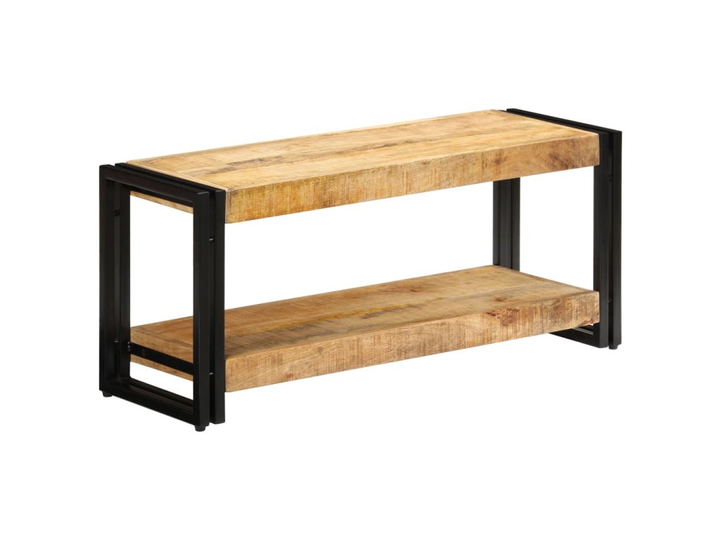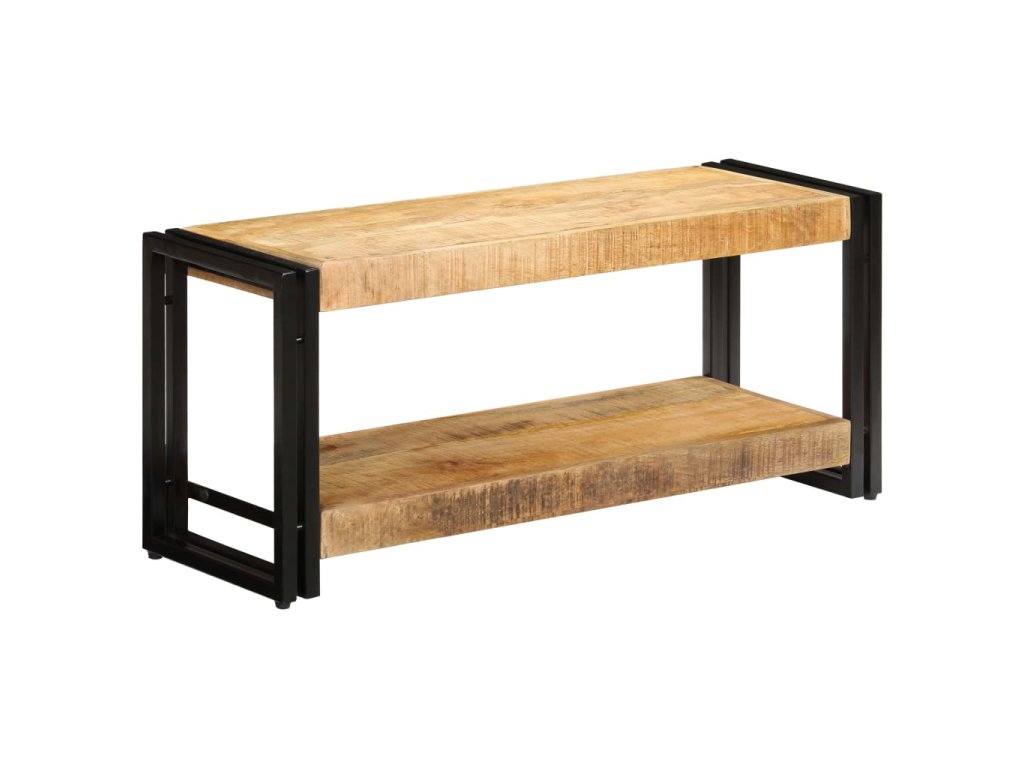 Multimediální skříňka je vyrobena z masivního mangovníku, což je tvrdé dřevo s hustou texturou. Hrubé mangovníkové dřevo je nejen schopné unést značnou váhu, ale výborně také odolává opotřebení a působení času. Stolek s překrásným designem je proto stabilní, odolný a příjemný na pohled. Je navíc celý ručně vyrobený a esteticky působivá kresba dřeva činí každý kus nábytku zcela jedinečným a lehce odlišným od ostatních. Železné nohy s práškovým nástřikem dodávají televizní skříňce na pevnosti a zároveň umocňují její industriální vzezření. Stolek pod televizi disponuje poličkou, jež vám poskytne spoustu místa, kam si můžete uložit svá multimediální zařízení, knížky, boty a celou řadu dalších věcí.