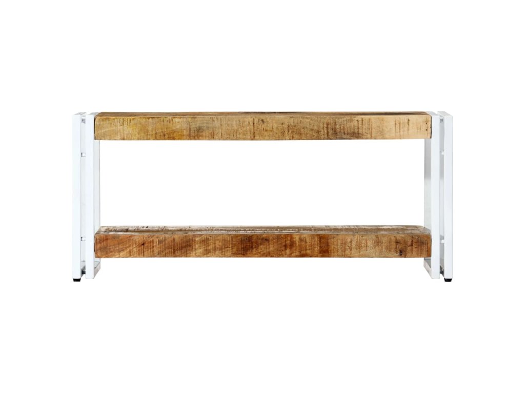 Odkládací stolek je zhotovený z masivního mangovníkového dřeva, které je nejen pevné a odolné, ale zároveň také krásně vypadá. Nohy jsou vyrobeny z železa, ošetřeného práškovým lakem, a přispívají ke stabilitě stolku a zároveň zdůrazňují jeho industriální styl. Zručné řemeslné zpracování a nádherná kresba dřeva činí každý kus nábytku jedinečným a lehce odlišným od ostatních. Každá fáze výrobního procesu je prováděna s mimořádnou péčí, ať už se jedná o leštění nebo lakování. Tento TV stolek je zajímavý také poličkou pod stolní deskou pro více úložného prostoru. Sestavení tohoto stolku pod televizi je snadné.