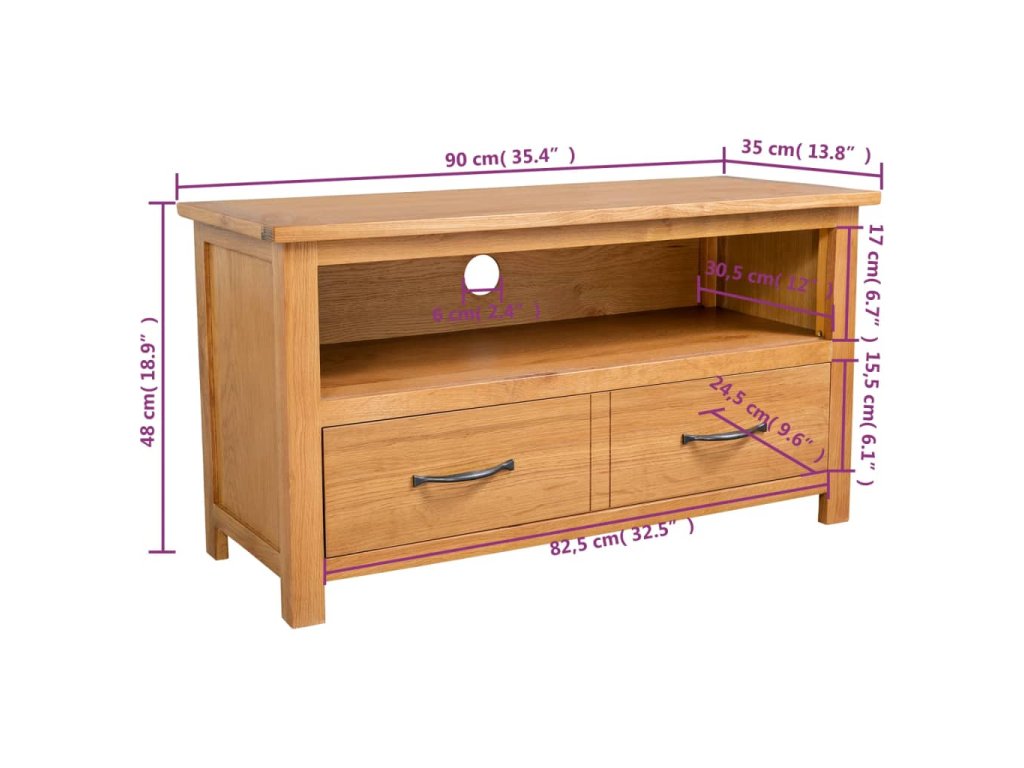 TV stolek 90 x 35 x 48 cm masivní dubové dřevo 244466