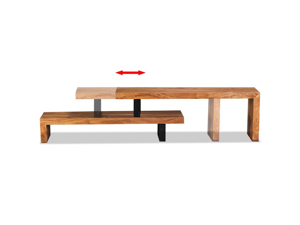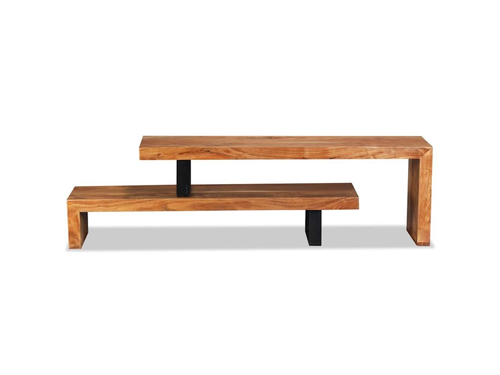 Náš TV stolek byl ručně vyrobený z masivního akáciového dřeva, které mu společně s řemeslným zpracováním propůjčuje krásný retro vzhled. Každý krok výroby je prováděný s největší péčí, ať už jde o leštění nebo lakování. Krásná struktura dřeva dává každému kusu nábytku jeho unikátní a mírně odlišný charakter. Stolek má dvě úrovně, kde najdete dostatek místa pro uložení multimediálních zařízení, datových nosičů a dalších předmětů, které chcete vystavit a zároveň je mít po ruce. Horní část TV stolku můžete sejmout nebo umístit tak, aby byl stolek delší či naopak kratší.