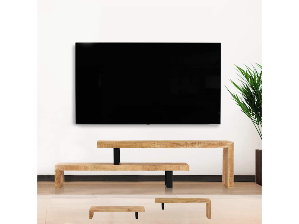Televizní skříňka je vyrobena z masivního mangovníkového dřeva, je tudíž výjimečně pevná a odolná. Každá fáze výrobního procesu je prováděna s mimořádnou péčí, ať už se jedná o leštění, natírání anebo lakování. Zručné zpracování a esteticky působivá kresba dřeva činí každý kus nábytku naprosto jedinečným a lehce odlišným od všech ostatních. Stolek má odnímatelnou část, takže si jeho délku můžete upravit podle svých potřeb. Montáž je snadná.