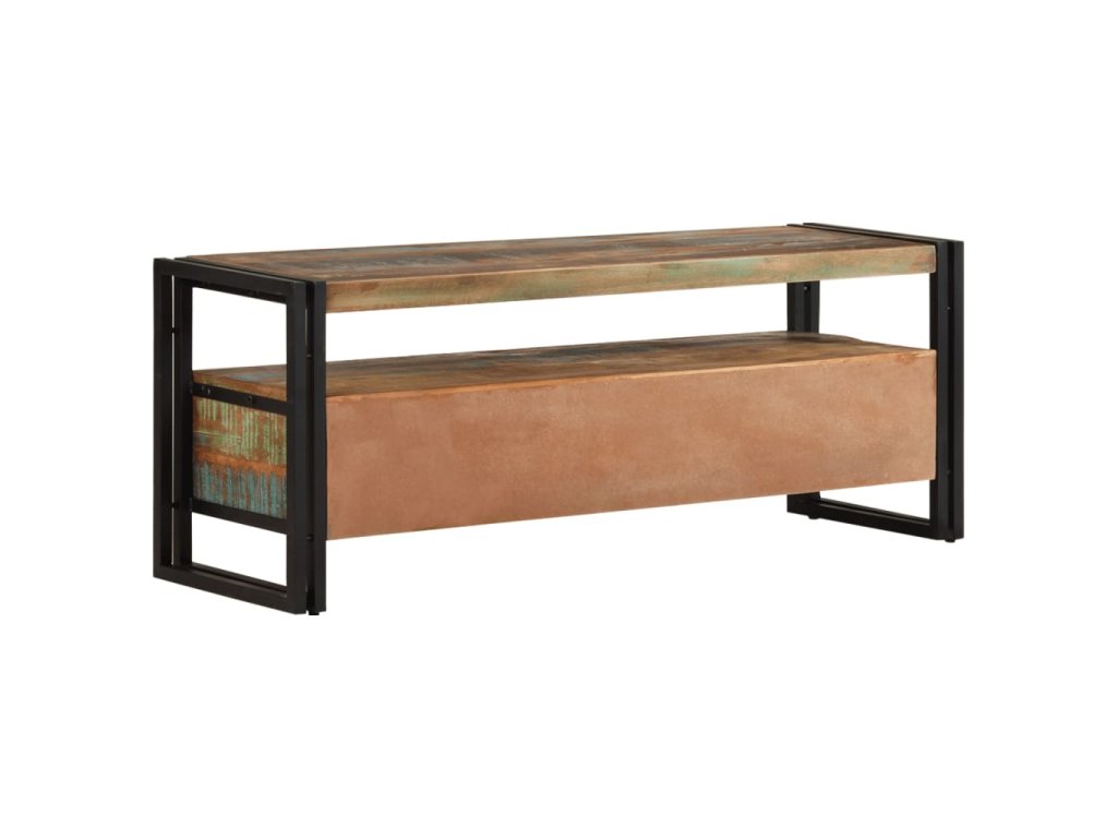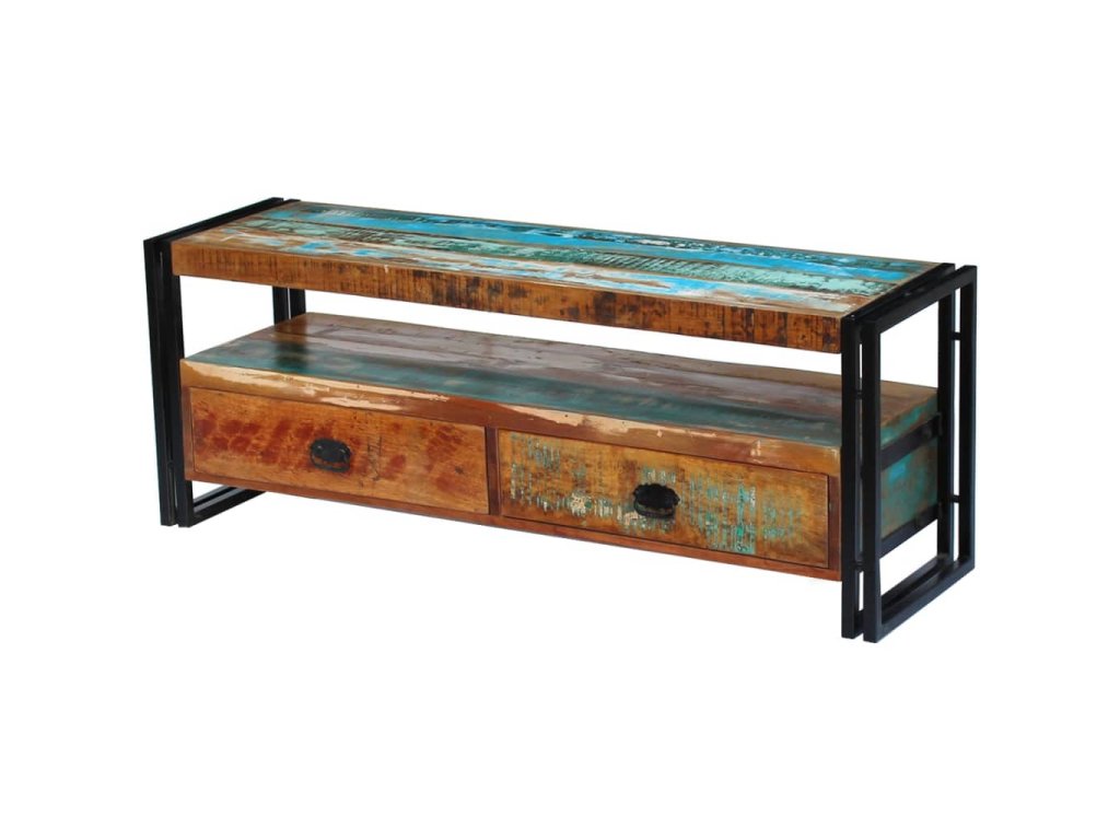 Tento TV stolek se dvěma zásuvkami je vyroben z masivního recyklovaného dřeva a vyzařuje vintage šarm, takže bude stylovým doplňkem do vašeho interiéru. Odlišnosti ve struktuře a barvě dřeva dávají tomuto kusu nábytku jedinečný charakter. Může být používán také jako odkládací stolek, stojan na hi-fi apod.