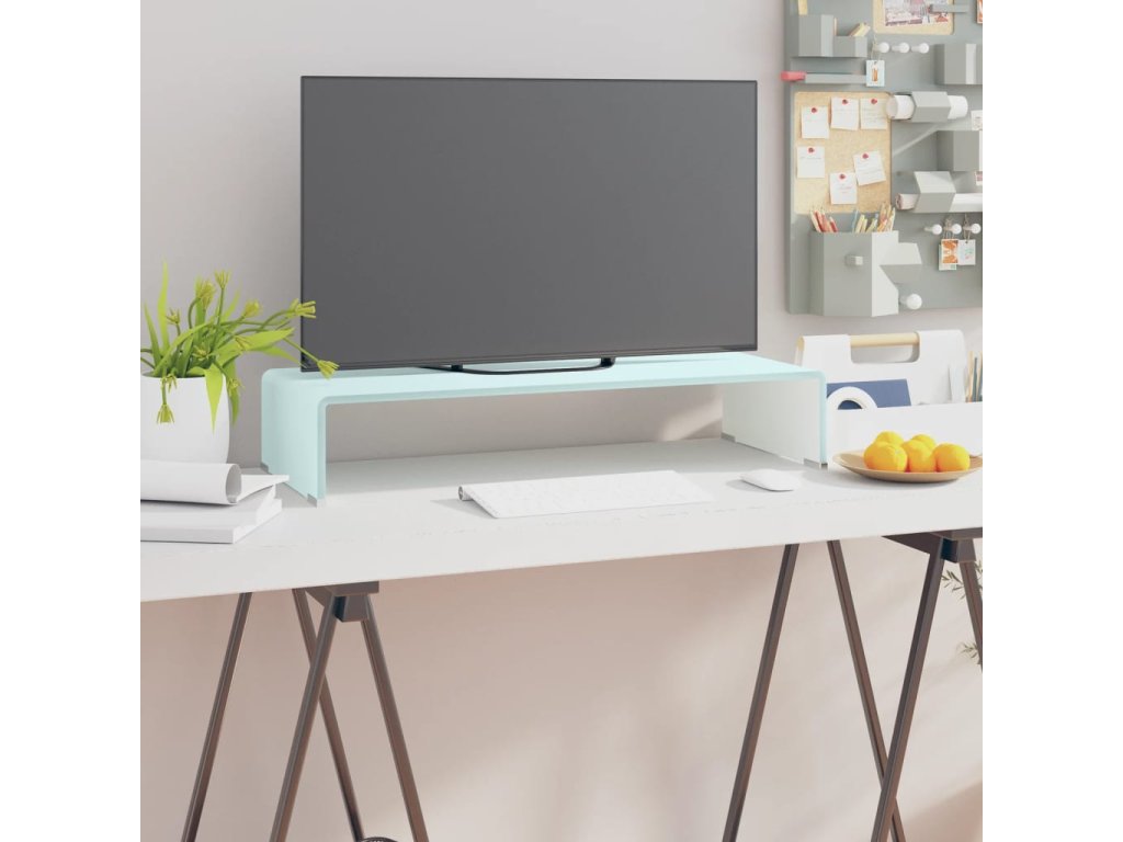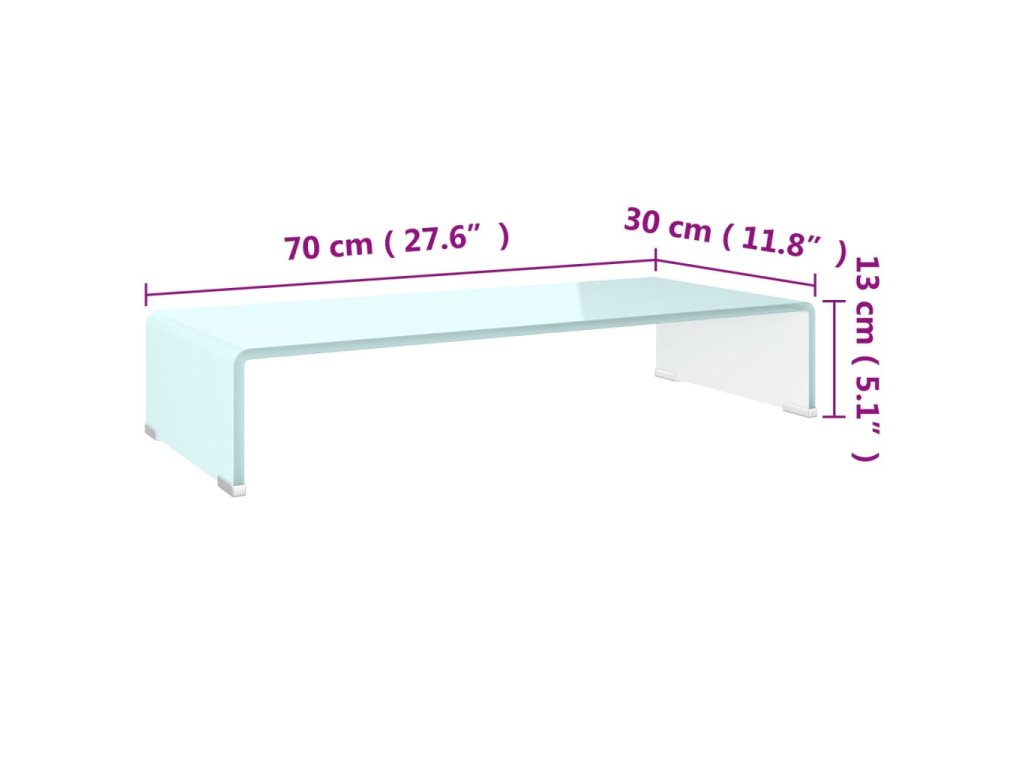 Tuto skleněnou polici můžete použít také jako TV stolek nebo stojan pod monitor vašeho stolního počítače, televizi, notebook nebo jiná multimediální zařízení. Když svůj monitor umístíte na tuto skleněnou polici, budete mít lepší výhled na obrazovku a zároveň se vám bude sedět pohodlněji, což vám pomůže snížit napětí ve vaší šíji a zádech. Úložný prostor pod ní můžete využít pro umístění svého DVD přehrávače, herní konzole, streamovacího zařízení, přijímačů a paměťových nosičů.