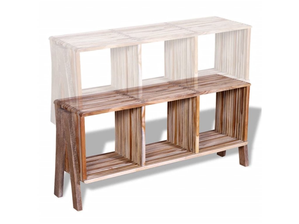 Tento vintage TV stolek z recyklovaného teaku je jak stylový tak i praktický, neboť je vybaven prostornými úložnými policemi. Lze jej používat jako TV skříňku, konzolový stolek, příborník, nízkou skříňku, odkládací stolek atd. Více jednotek lze rovněž umístit na sebe a vytvořit tak běžnou skříňku. Skvěle doplní obývací pokoj nebo ložnici.