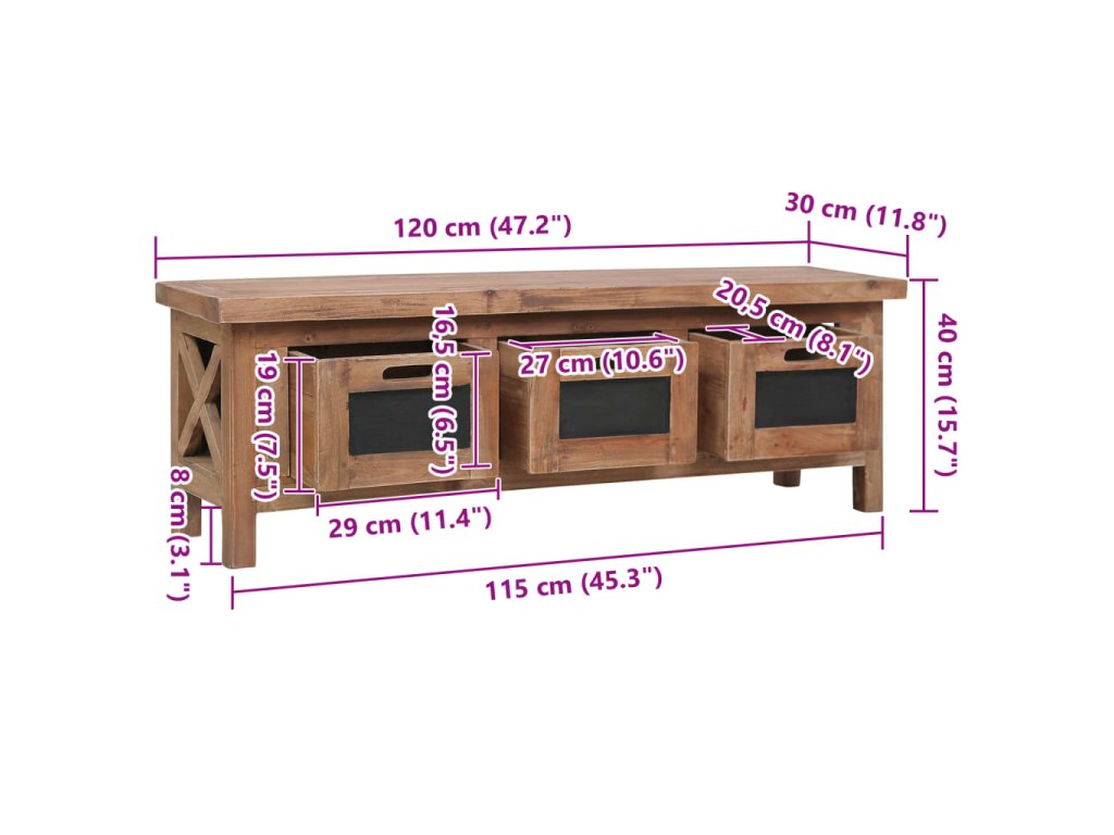 - Rozměry: 120 x 30 x 40 cm (Š x H x V)
