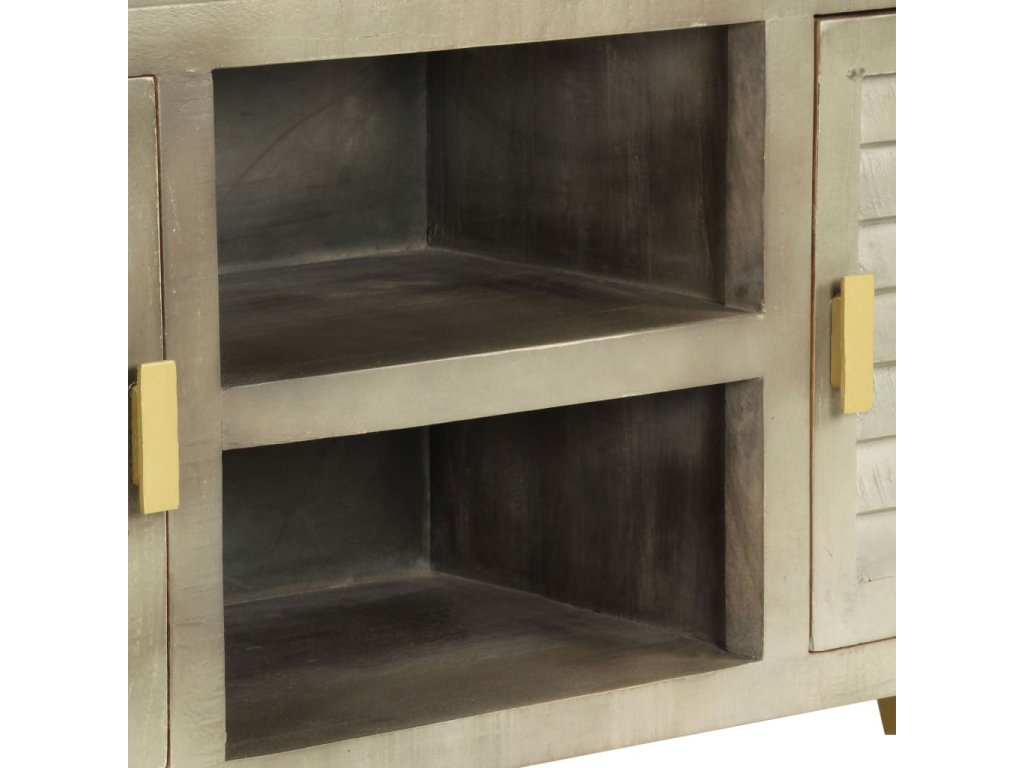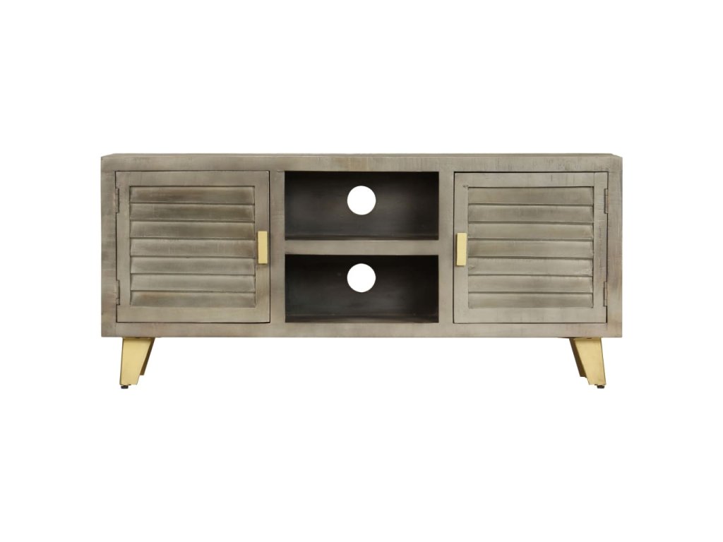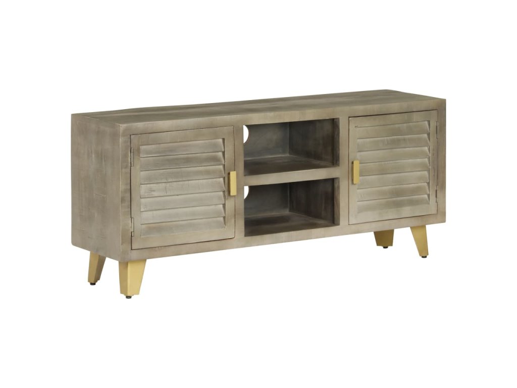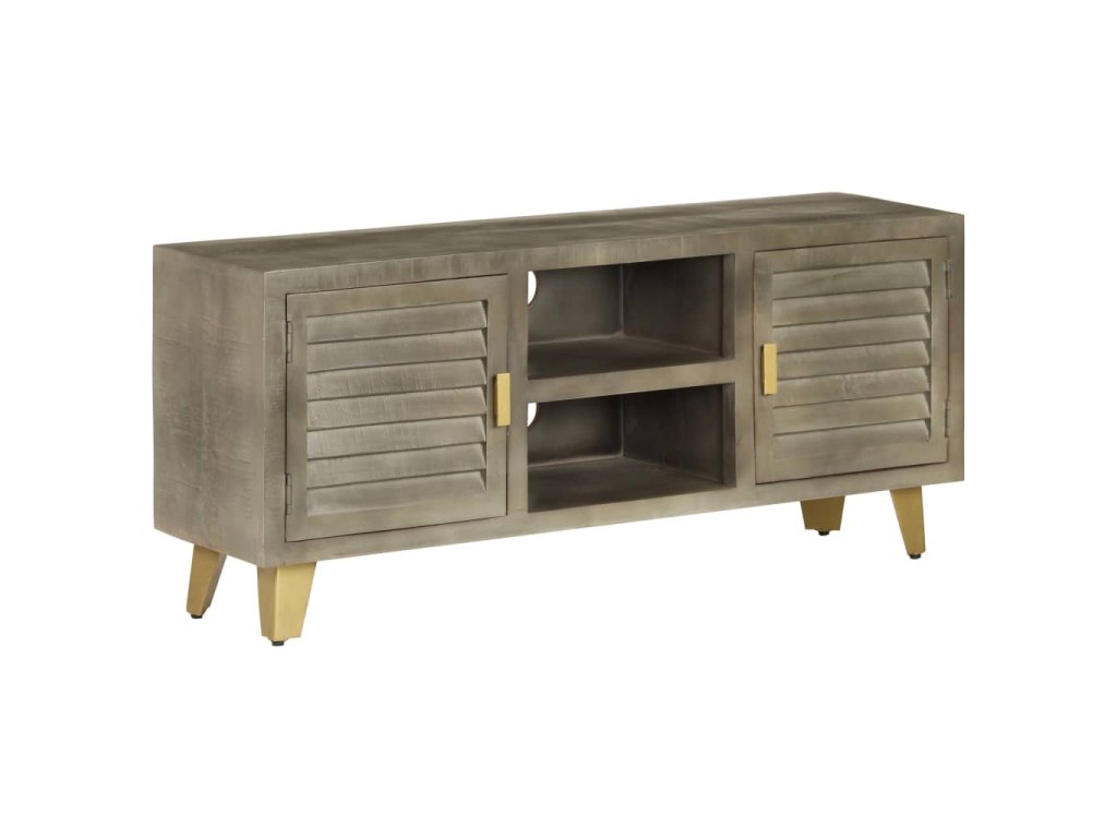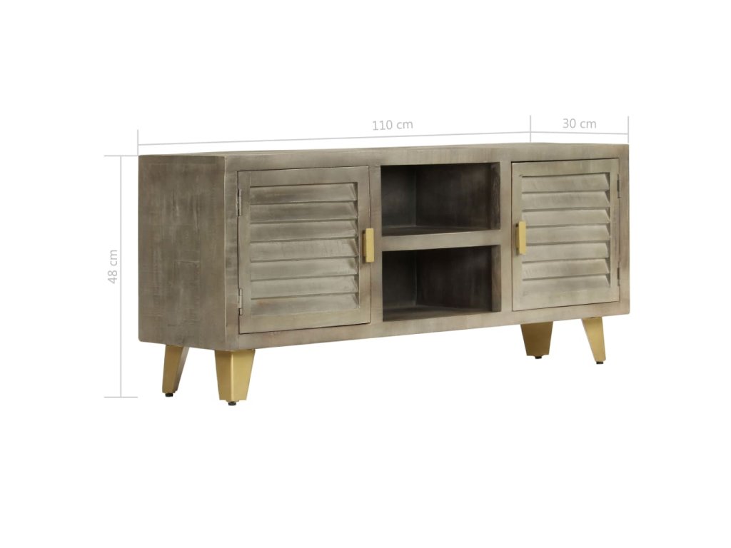 TV stolek šedý s mosazí 110 x 30 x 48 cm masivní mangovník 246681