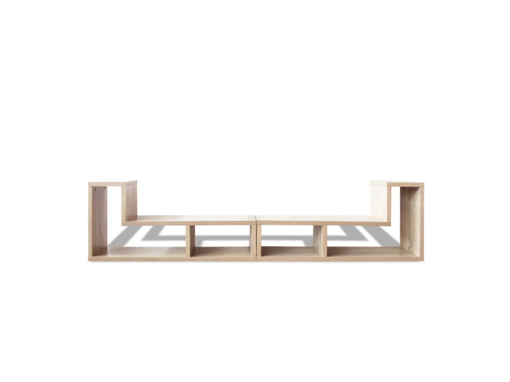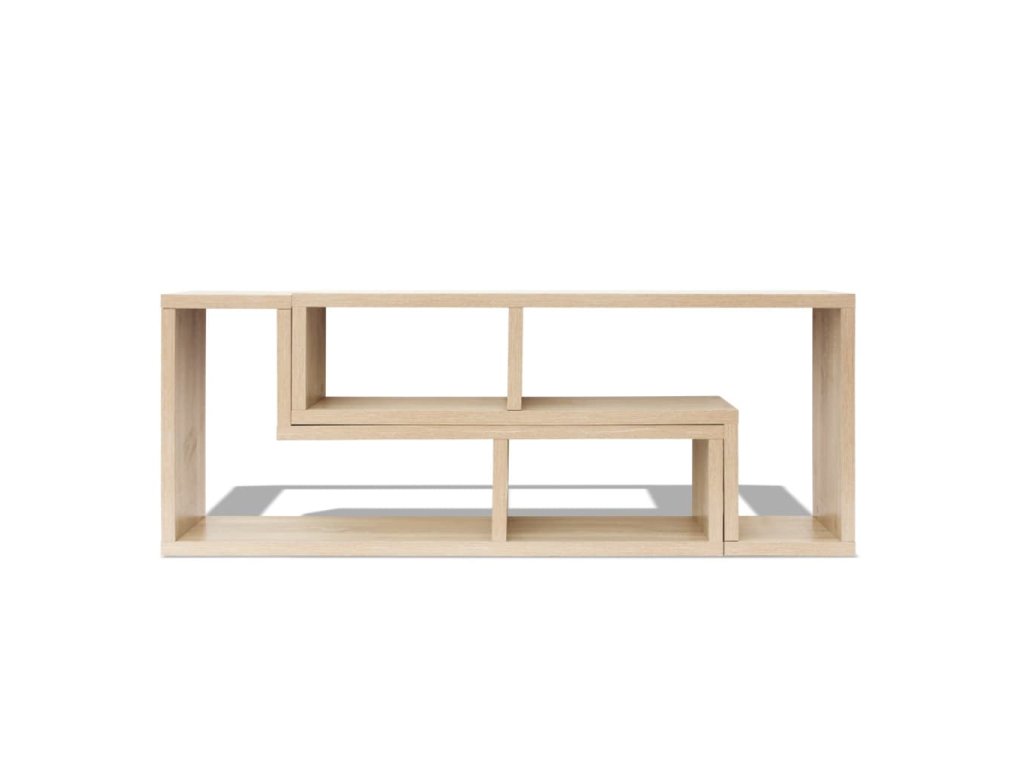 Tento televizní stolek má robustní konstrukci, takže je mimořádně odolný. Televizní stolek se skládá ze 2 polic ve tvaru písmene L, které se dají uspořádat různými způsoby. Na prostorné police se spoustou místa můžete přehledně uložit váš DVD přehrávač, herní konzoli, streamovací zařízení, mediální nosiče, dekorativní předměty atd.