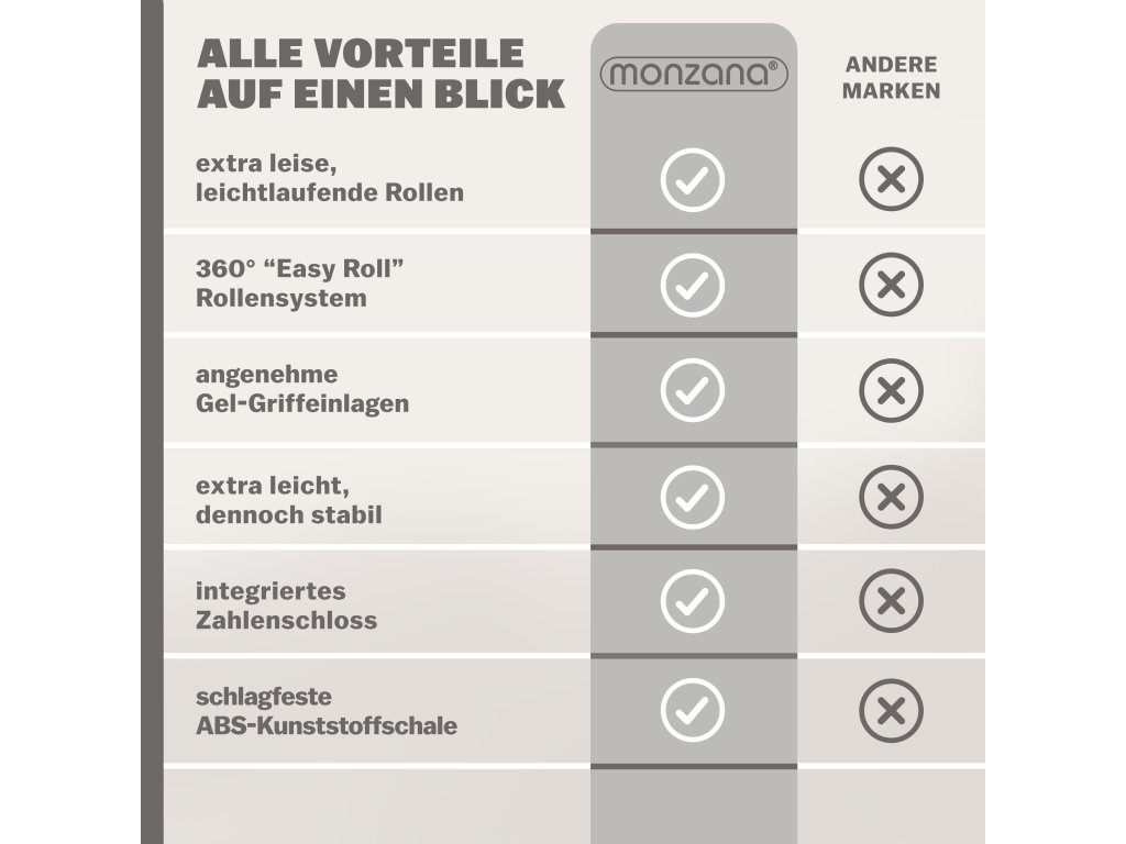 Součástí je také číselný zámek pro bezpečné cestování, a zpevněné rohy pro zvýšenou životnost.