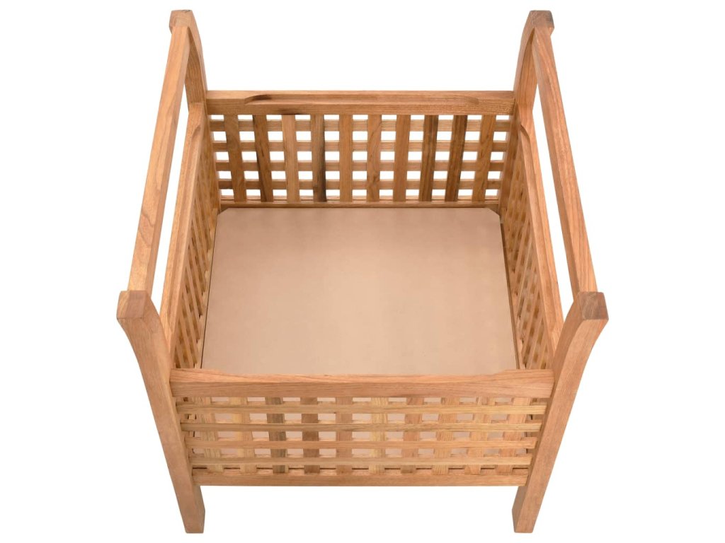 Stolička je vyrobena z masivního ořechového dřeva a překližky, je tudíž pevná a odolná. Skrývá se v ní prostorná úložná přihrádka, která je jako dělaná ke skladování ručníků, hraček a dalšího příslušenství. Její mřížkové provedení umožňuje dobré větrání. Silně polstrovaná poduška se vám navíc postará o mimořádně pohodlné sezení. Je opatřena povlakem na zip, který snadno sundáte a vyperete.