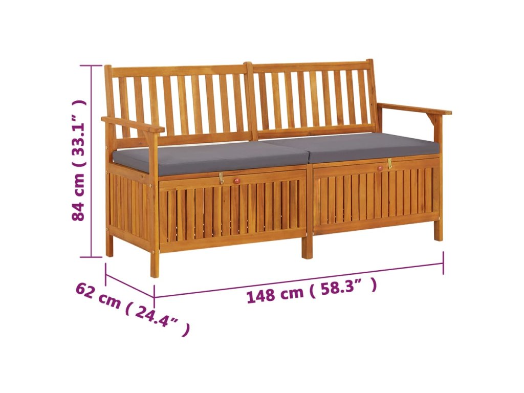 Úložná lavice s poduškou 148 cm masivní akáciové dřevo 316740