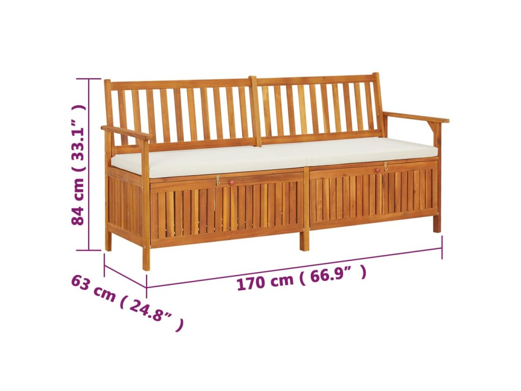 Úložná lavice s poduškou 170 cm masivní akáciové dřevo 316738