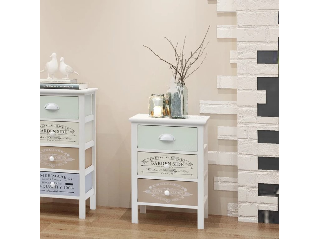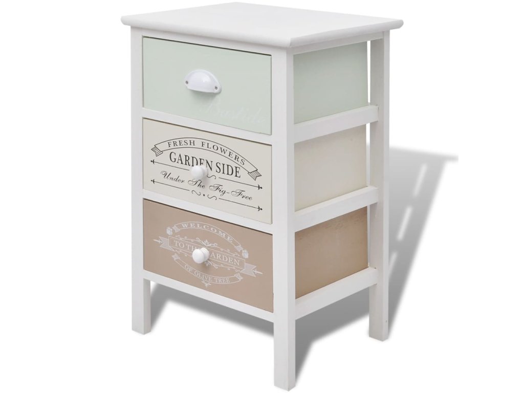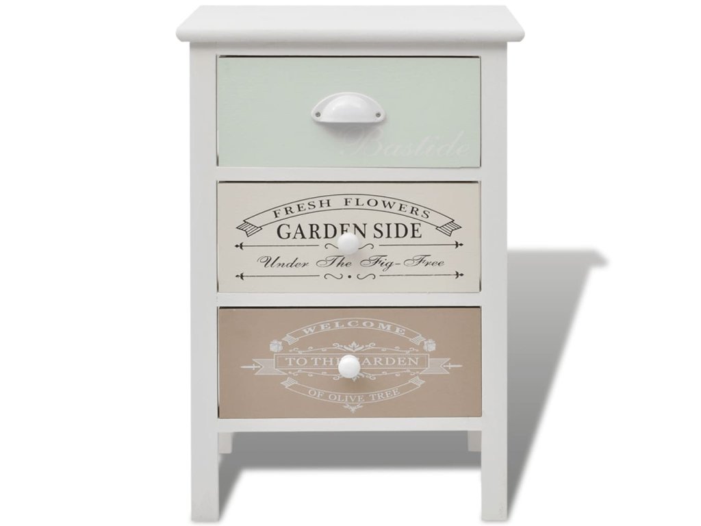 Úložná skříňka ve francouzském stylu 3 zásuvky dřevěná 242876