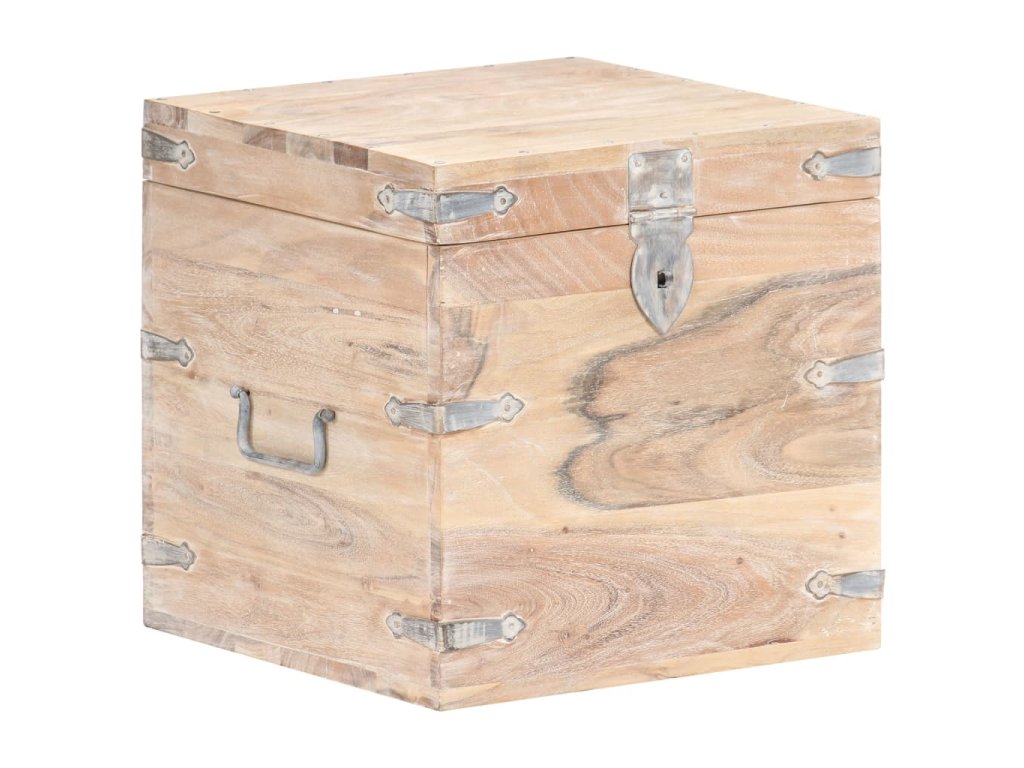 Tato truhla je vyrobená z masivní akácie, tropického tvrdého dřeva, které je stabilní a má dlouhou životnost. Má západku na přední straně a dvě rukojeti pro snadné zvednutí a přenášení. Tento úložný box se stabilní plochou horní deskou lze také použít jako noční stolek. Řemeslné zpracování a krásná dřevěná kresba dává každému kusu nábytku jedinečný a od všech ostatních mírně odlišný charakter.