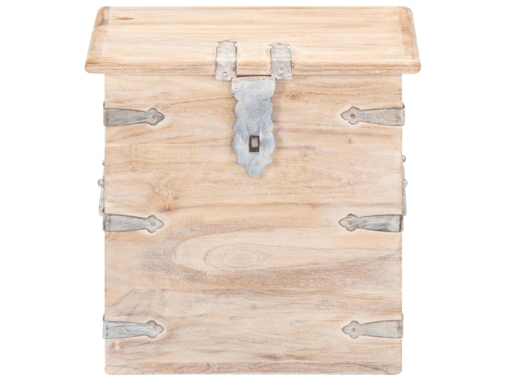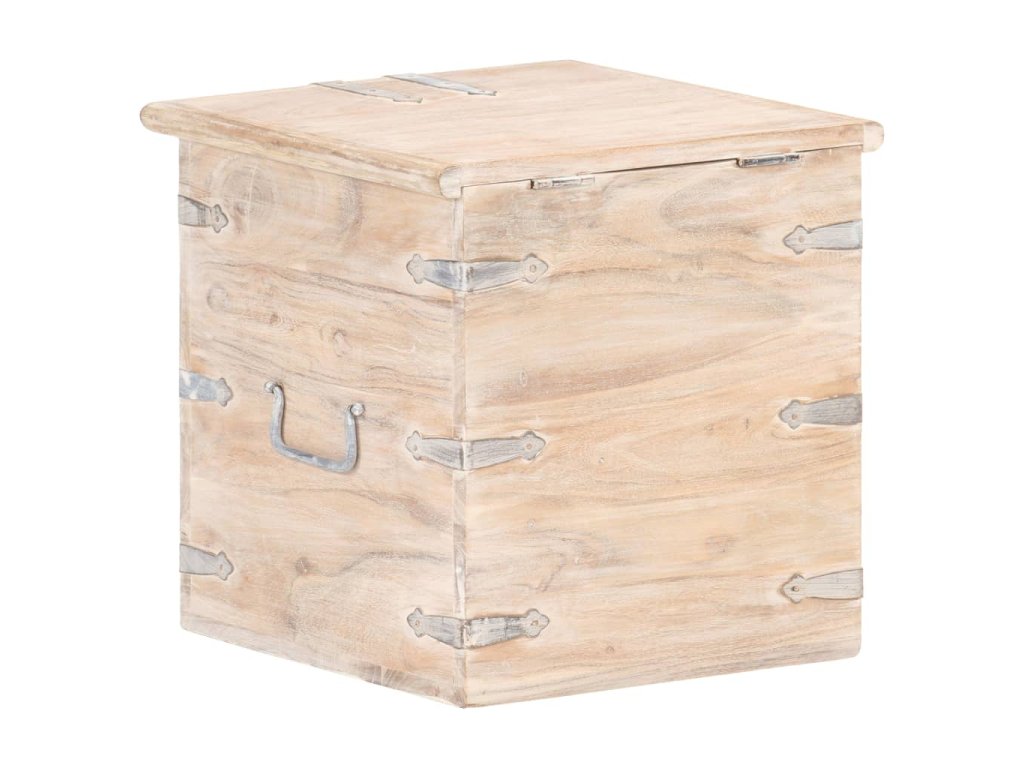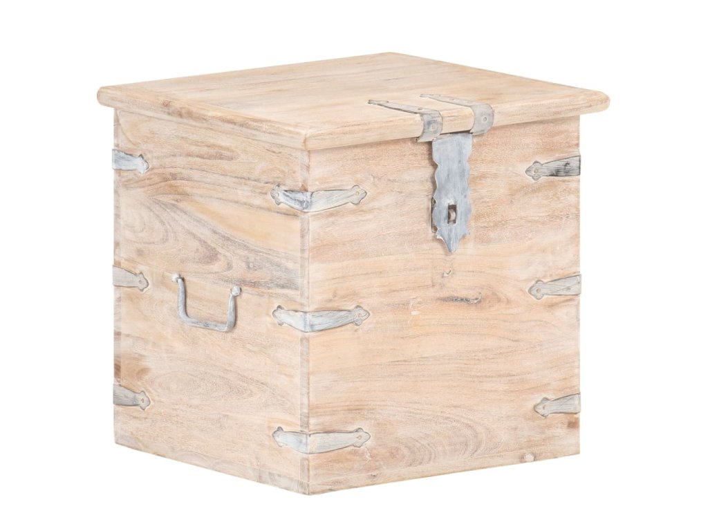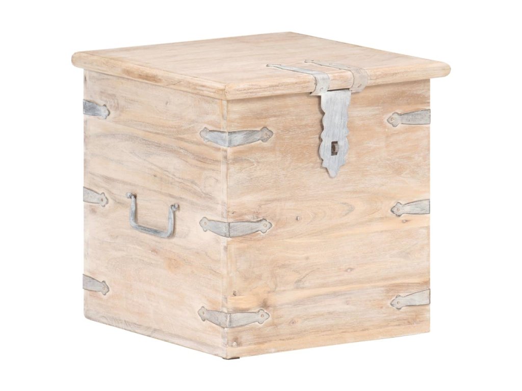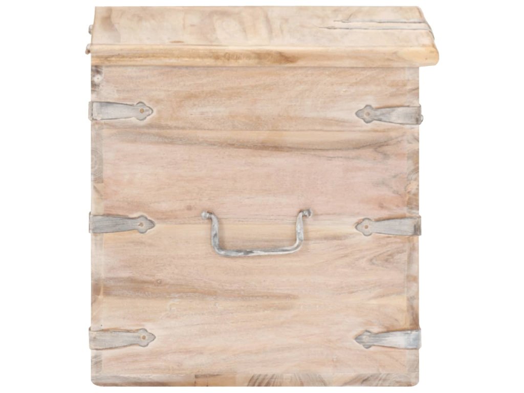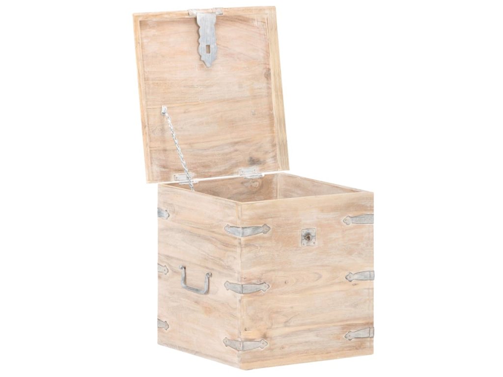 Tato truhla je vyrobená z masivní akácie, tropického tvrdého dřeva, které je stabilní a má dlouhou životnost. Má západku na přední straně a dvě rukojeti pro snadné zvednutí a přenášení. Tento úložný box se stabilní plochou horní deskou lze také použít jako noční stolek. Řemeslné zpracování a krásná dřevěná kresba dává každému kusu nábytku jedinečný a od všech ostatních mírně odlišný charakter.