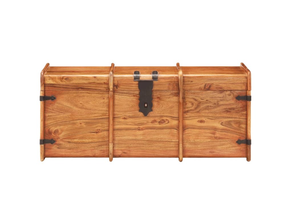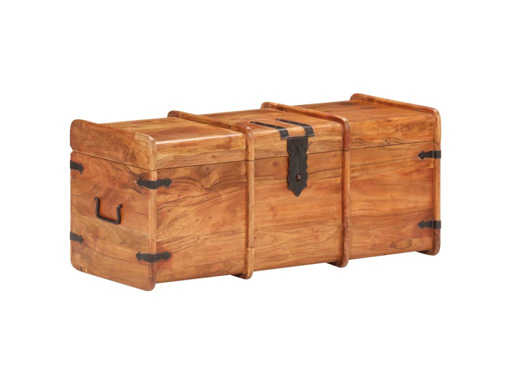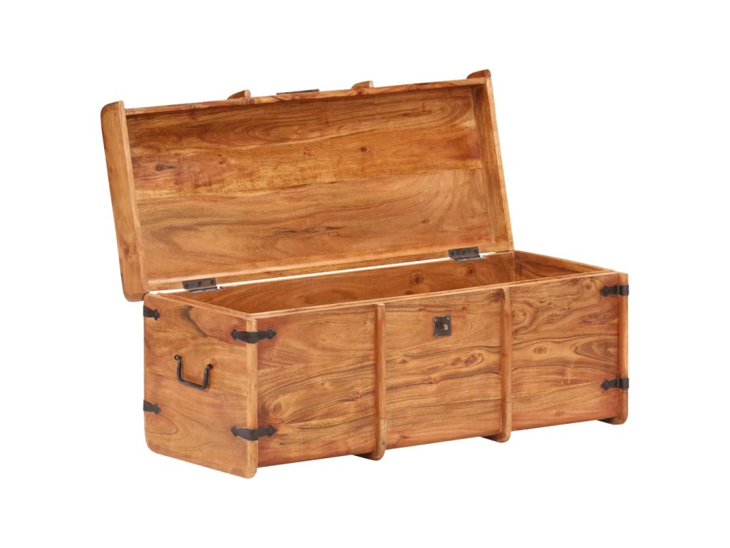 Tato úložná skříňka je vyrobená z masivního akáciového dřeva, které je stabilní a má dlouhou životnost. Má západku na přední straně a dvě rukojeti pro snadné zvednutí truhly. Na stabilní rovnou horní desku si můžete vystavit různé dekorace. Řemeslné zpracování a krásná dřevěná kresba dává každému kusu nábytku jedinečný a od všech ostatních mírně odlišný charakter.