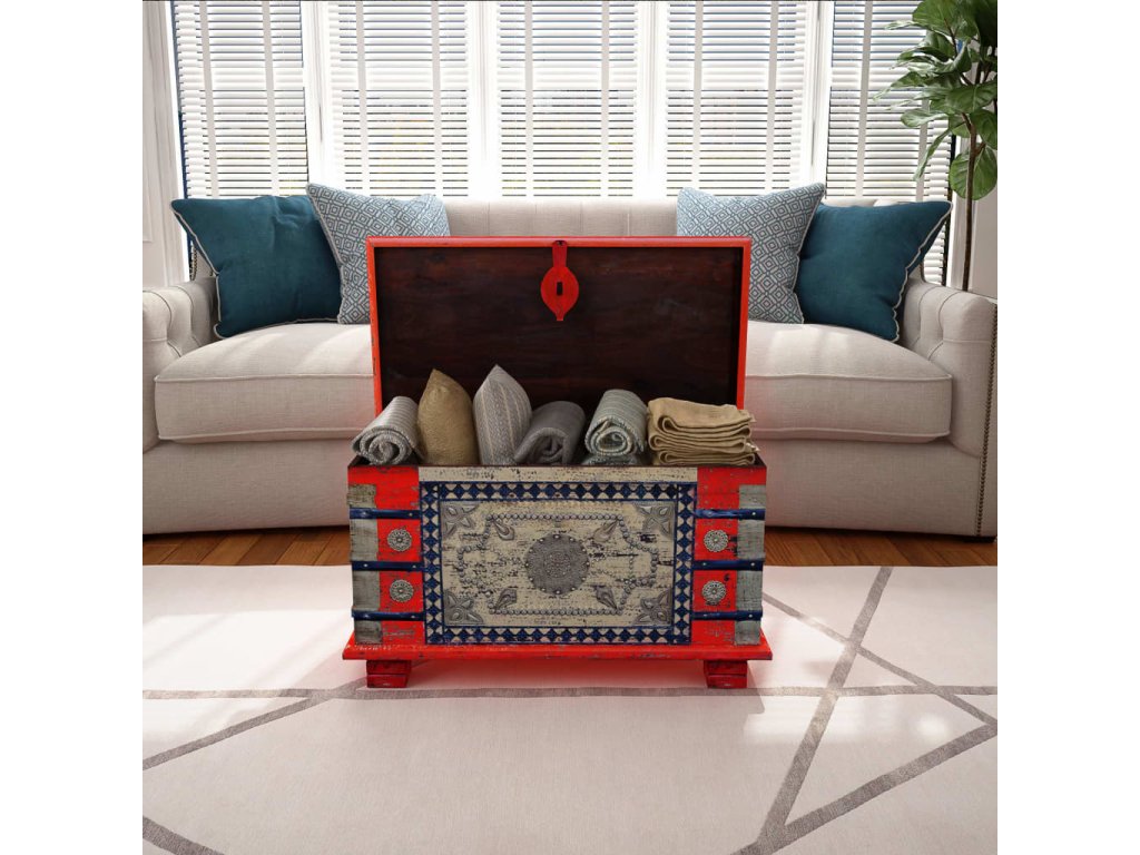 Tato indická truhla byla celá vyrobena ručně. Každý krok výroby byl proveden s tou největší pečlivostí, ať už jde o leštění, natírání či lakování.