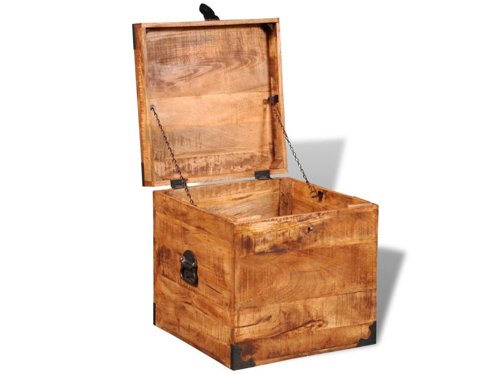 Tato truhla je celá vyrobena ručně z masivního dřeva, což znamená, že každý kus je jedinečný a lehce se odlišuje od ostatních. Drsné mangovníkové dřevo je solidní, pevné, odolné a krásné.