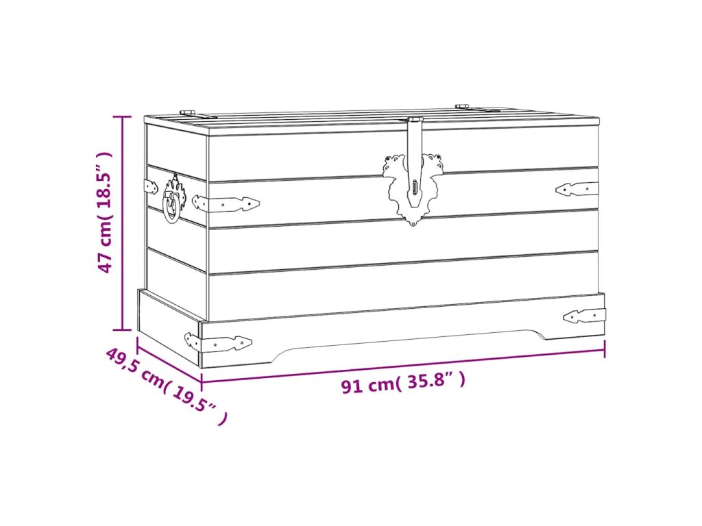 Skladovací truhla má také robustní černé kovové kování, které zvyšují její bytelnost i retro styl. Truhla má praktické rukojeti a může být uzamčena. Dokonce ji můžete použít jako konferenční stolek nebo odkládací stolek.