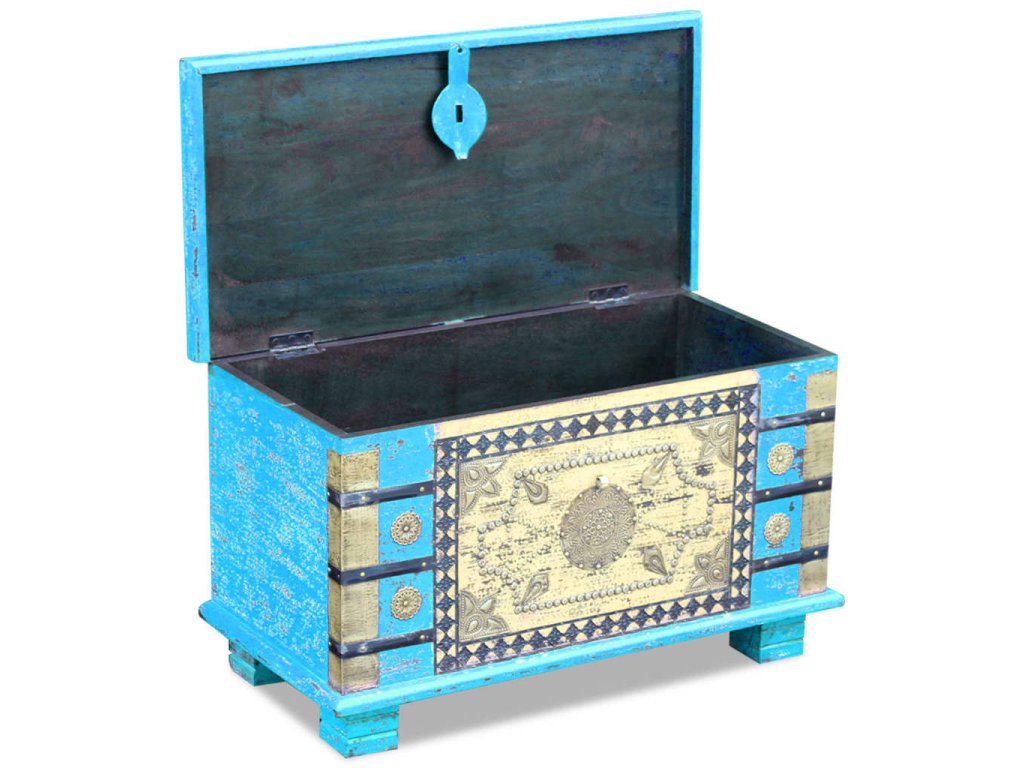 Tato indická truhla byla celá vyrobena ručně. Každý krok výroby byl proveden s tou největší pečlivostí, ať už jde o leštění, natírání či lakování.