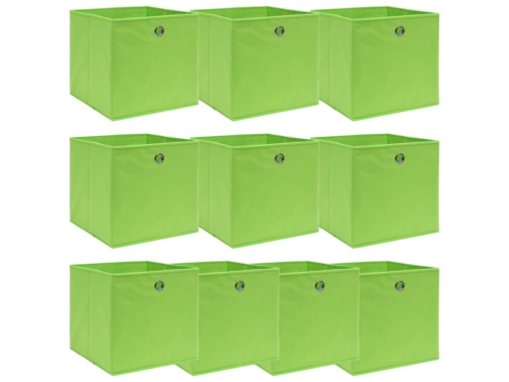 Úložné boxy 10 ks zelené 32 x 32 x 32 cm textil 288371