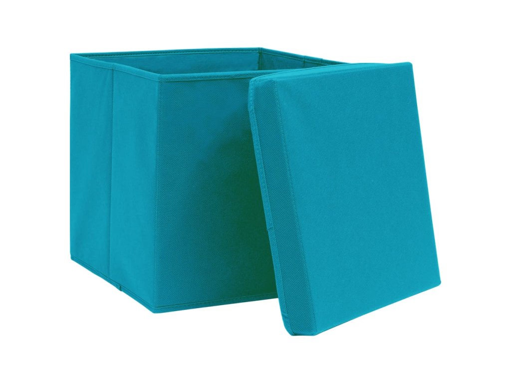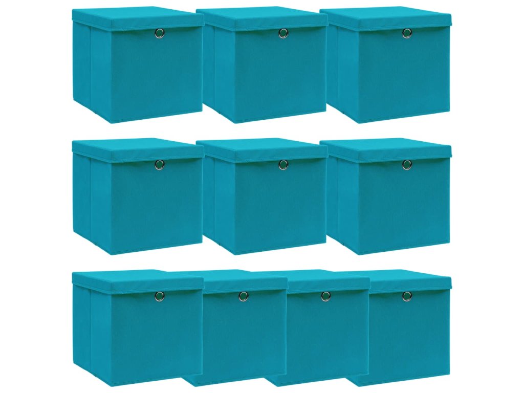 Úložné boxy s víky 10 ks bledě modré 32 x 32 x 32 cm textil 288376
