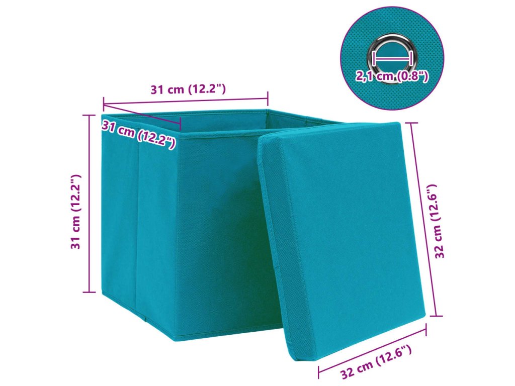 Praktické úložné boxy jsou vyrobené z netkané textilie, takže jsou vskutku velmi odolné. Na každém boxu je víko, které chrání uložené věci před zašpiněním. Každý úložný box je také vybavený praktickým kovovým očkem, za který box snadno vytáhnete z vašeho šatníku, police, skříňky atd. Když je zrovna nepoužíváte, dají se úložné boxy snadno složit, aby vám zbytečně nepřekážely.