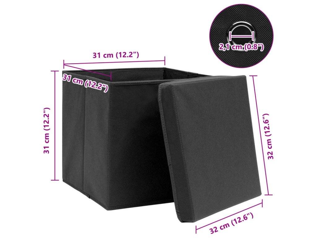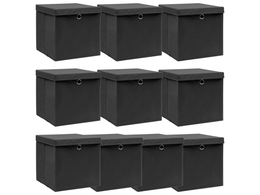 Úložné boxy s víky 10 ks černé 32 x 32 x 32 cm textil 288334