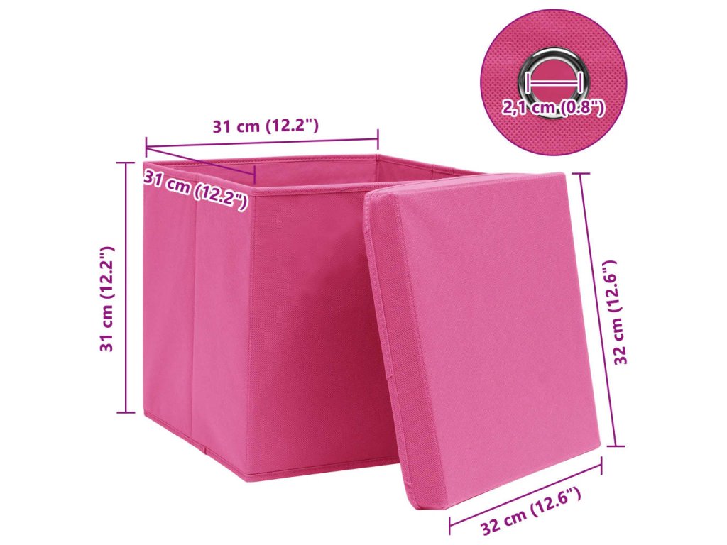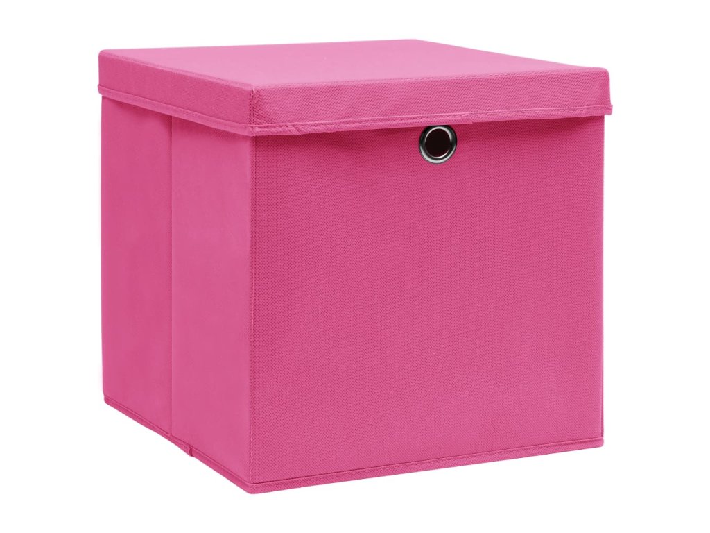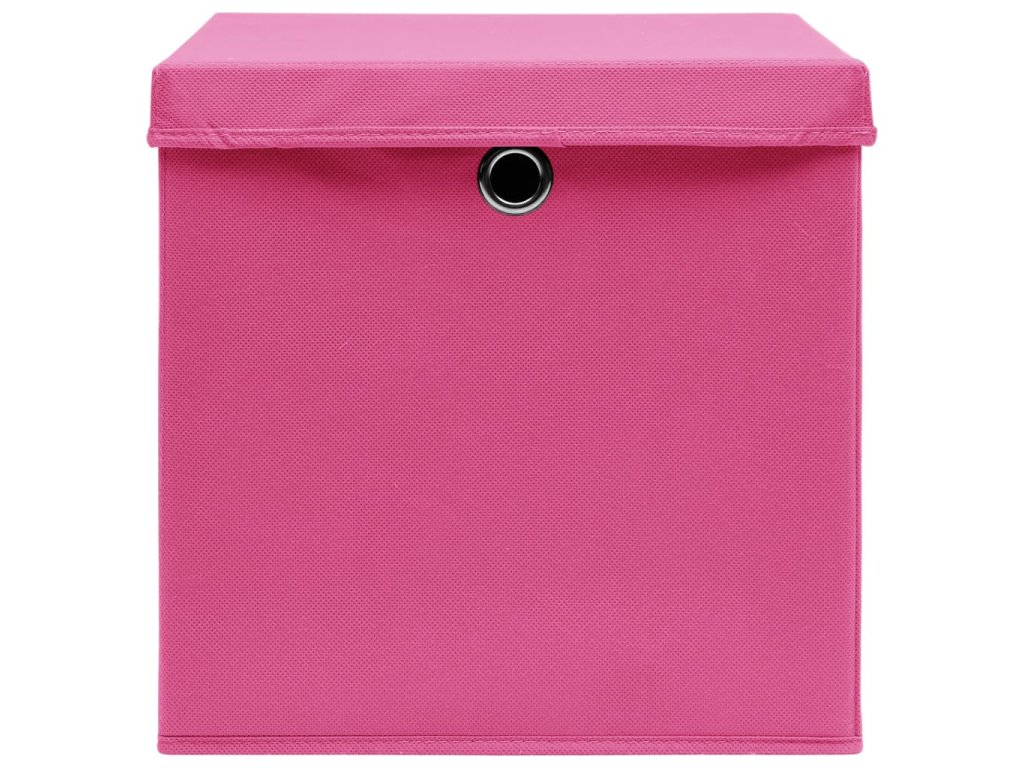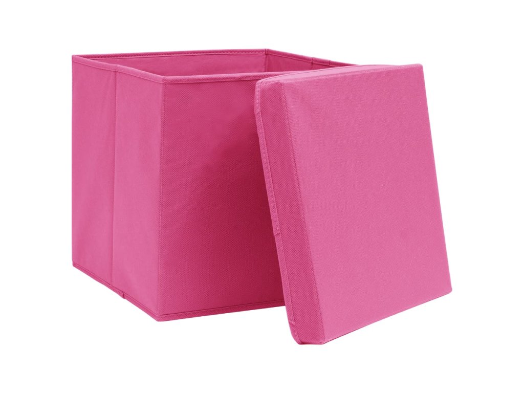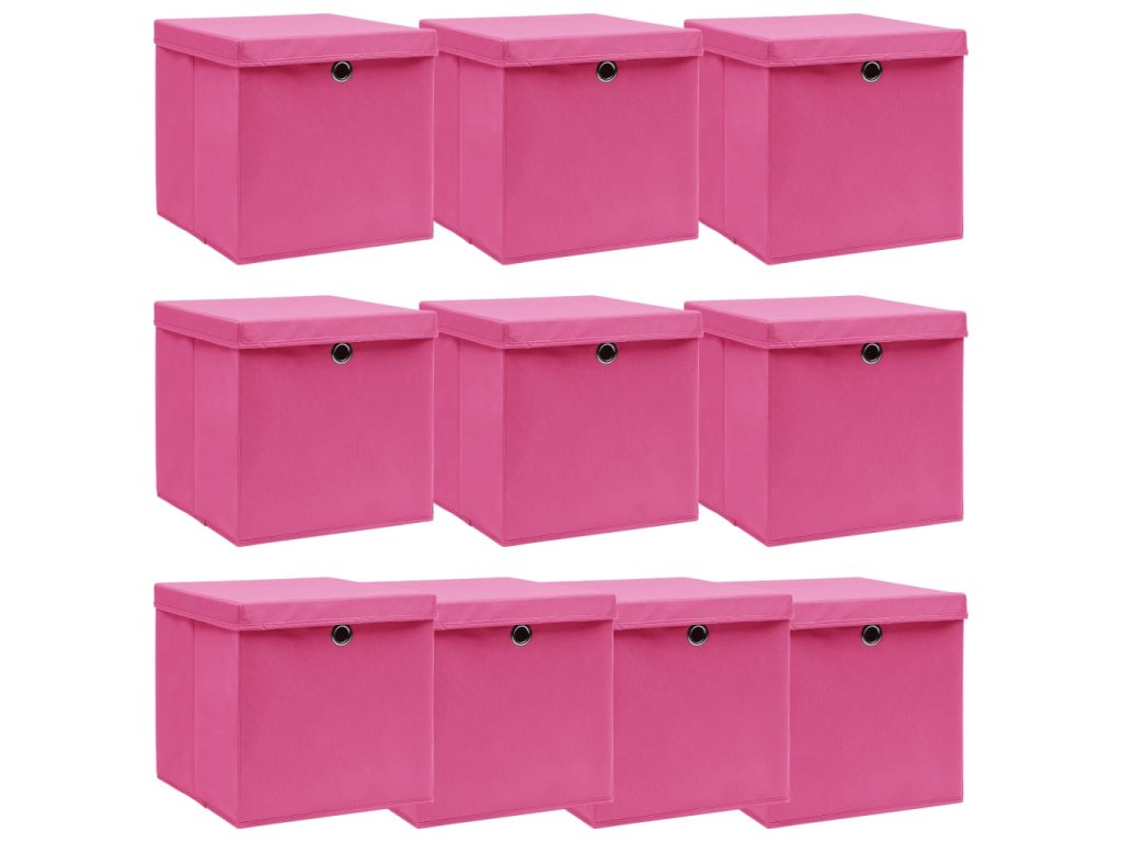 Úložné boxy s víky 10 ks růžové 32 x 32 x 32 cm textil 288348