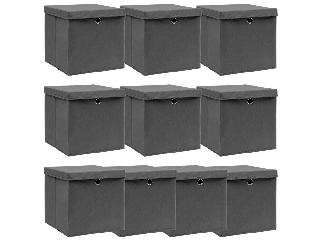 Úložné boxy s víky 10 ks šedé 32 x 32 x 32 cm textil 288336